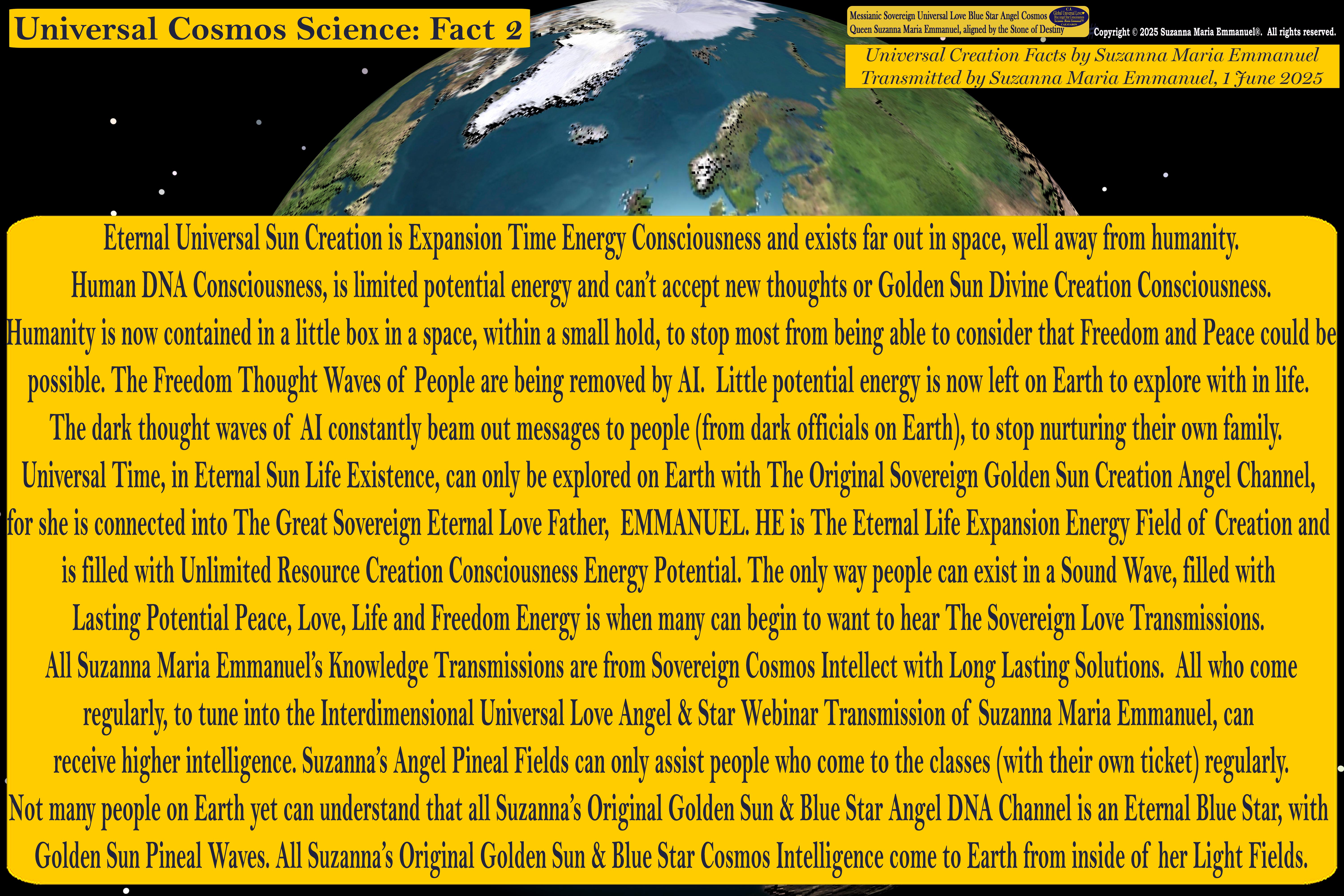 All Sovereign Cosmos Intellect is Transmitted by Suzanna Maria Emmanuel and is copyright protected. Copyright © 2025 Suzanna Maria Emmanuel®. All rights reserved.