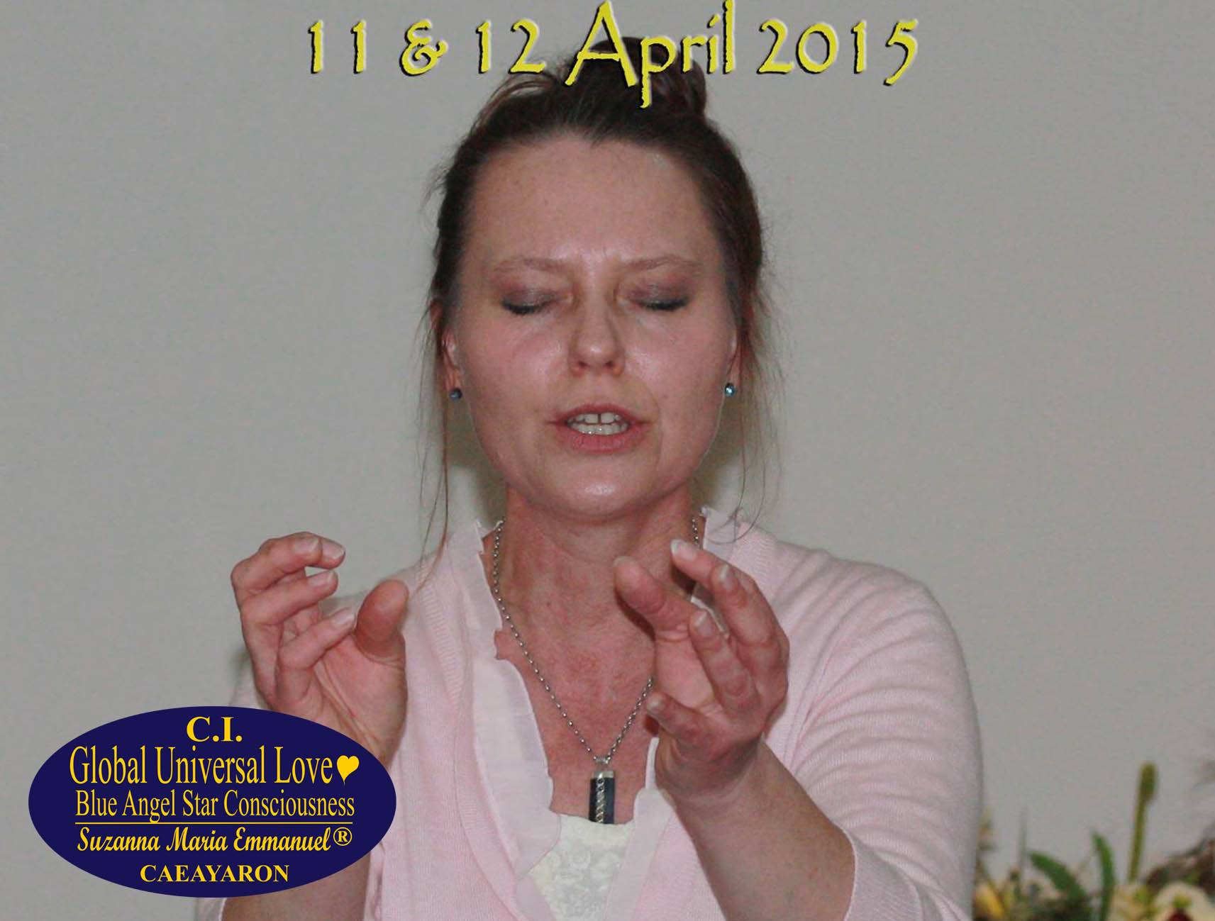 At the Original Sovereign Universal Love Activation Events, Suzanna stands for many hours (for several days) on stage to ground in all Original Sovereign Sun Creation Cosmos Star DNA Codes of Life (which are the Original Star Creation Memory Fields of Life), to reconnect them back in for all individual people who come to Caeayaron's and Sovereign Lord Emmanuel's Original Blue Star DNA Pineal Activation Events (of her own will and with her own desire within Universal Love Star Interdimensional Consciousness).
