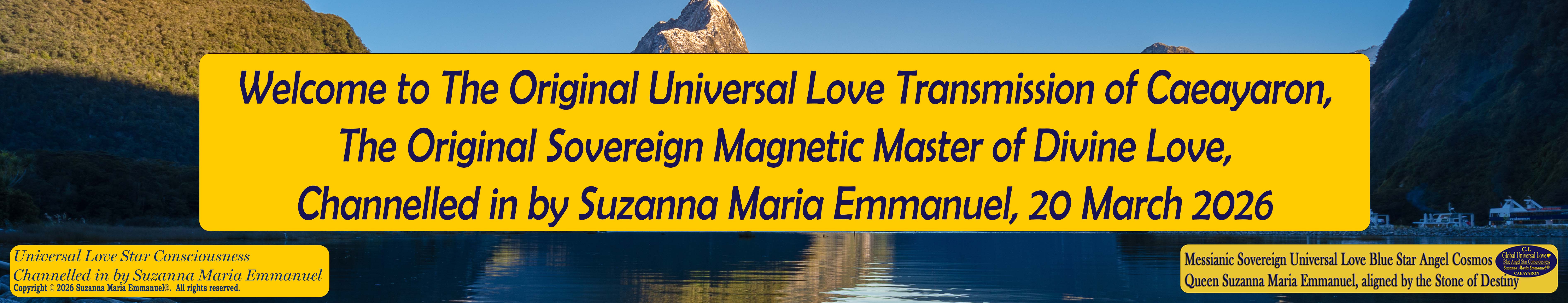 The Universal Love Channelled Transmission, by Suzanna Maria Emmanuel, The Original Golden Sun & Blue Star Pineal DNA Universal Love Angel Channel. This channelled transmission began on 20 March 2026. It came in for the Universal Love Angel & Sovereign Master Crystal Attunement, 21 March 2026, and was published in the manual for the Master Crystal Attunement, at short notice, as the questions for Caeayaron, The Original Sovereign Magnetic Master, were asked directly by some who attended the group.