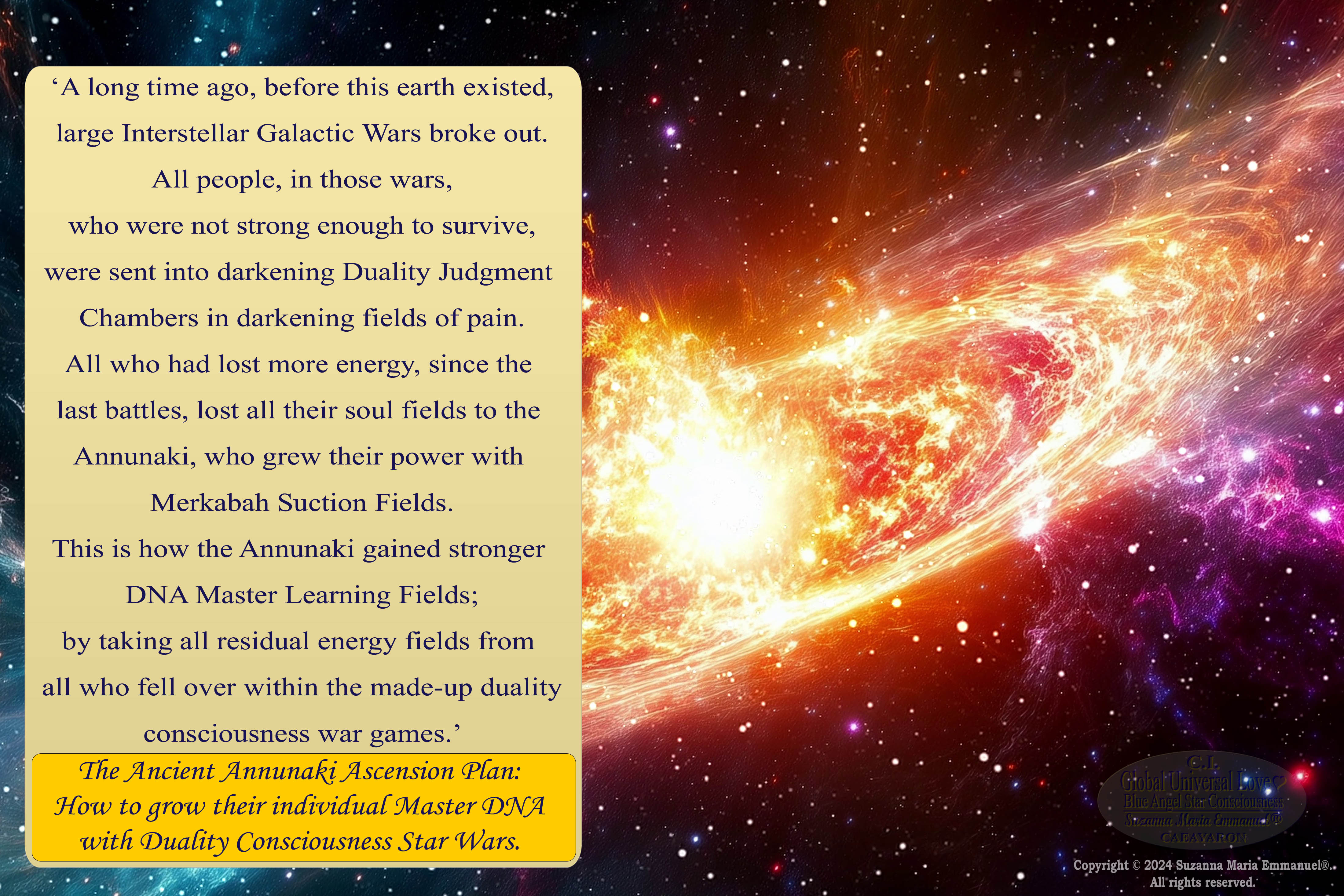 All Sovereign Cosmos Intellect is Transmitted by Suzanna Maria Emmanuel and is copyright protected. Copyright © 2025 Suzanna Maria Emmanuel®. All rights reserved.