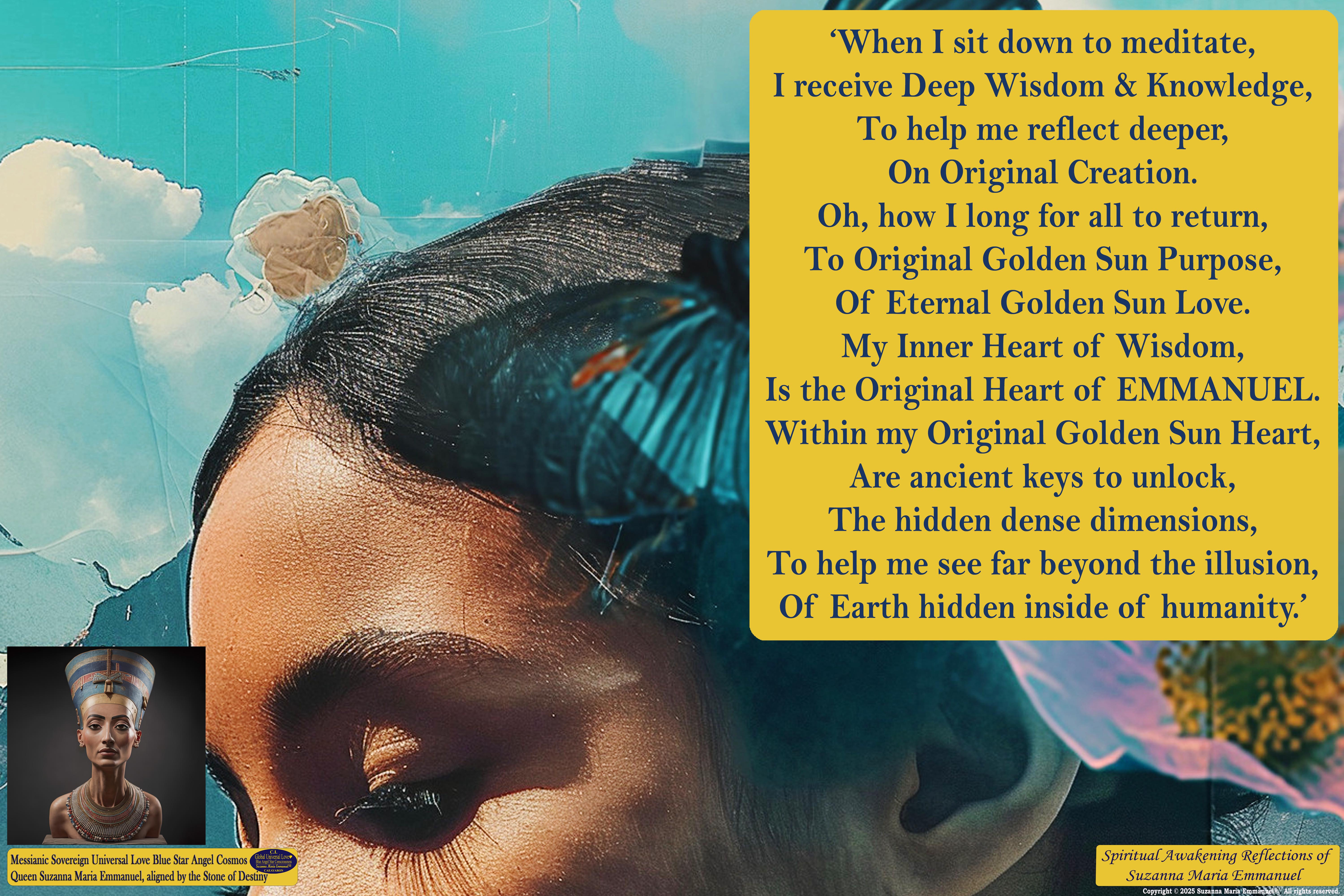 Copyright © 2025 Suzanna Maria Emmanuel®. All rights reserved. All Suzanna Maria Emmanuel's Interdimensional Star Intellect Transmissions of Universal Love Star Consciousness carry a professional and Legal Disclaimer & Indemnity, Trademark, and Copyright Protection Clause.