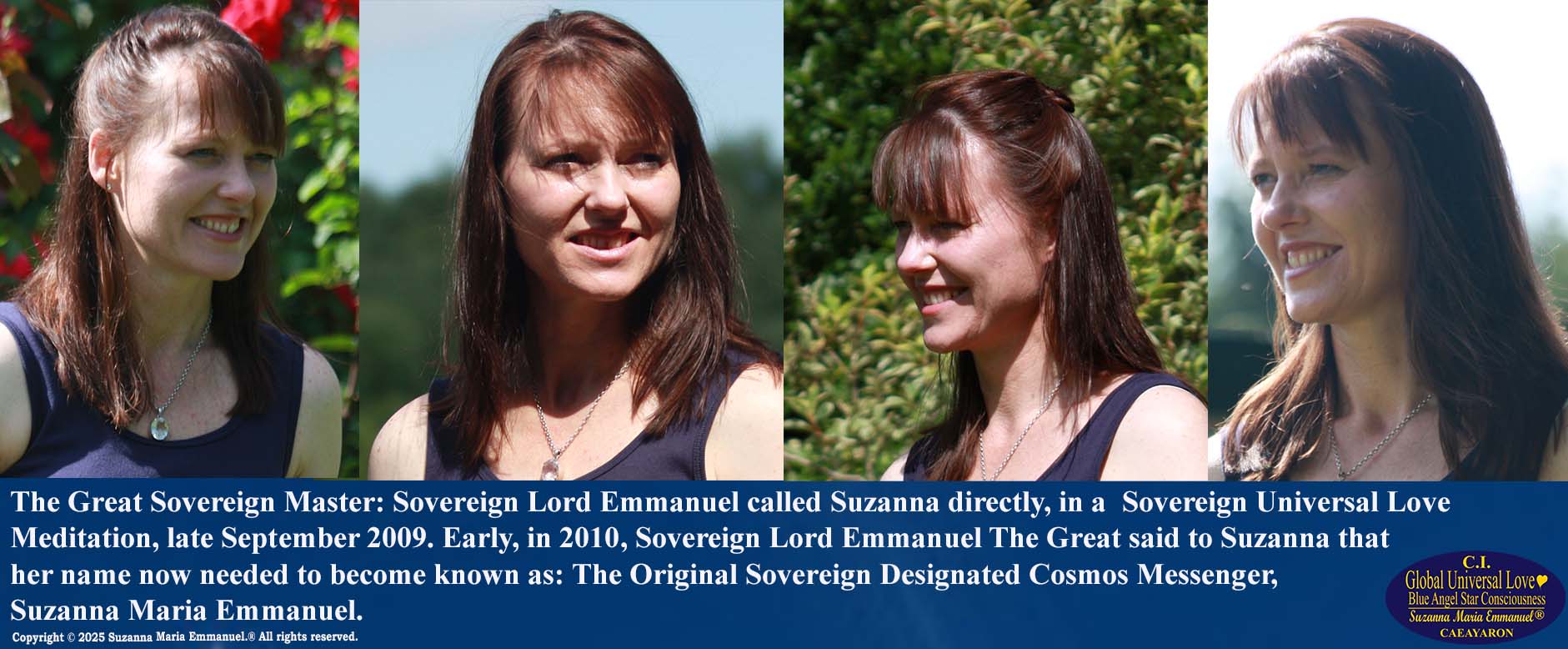 Suzanna Maria Emmanuel is The Original Sovereign Universal Love Golden Sun & Blue Star Angel Pineal DNA Transmission Channel for Sovereign Lord Emmanuel The Great & Caeayaron, The Original Sovereign Master of Magnetic Cosmos Intelligence in The Original Sovereign Universal Love Star Creation Dimensions.