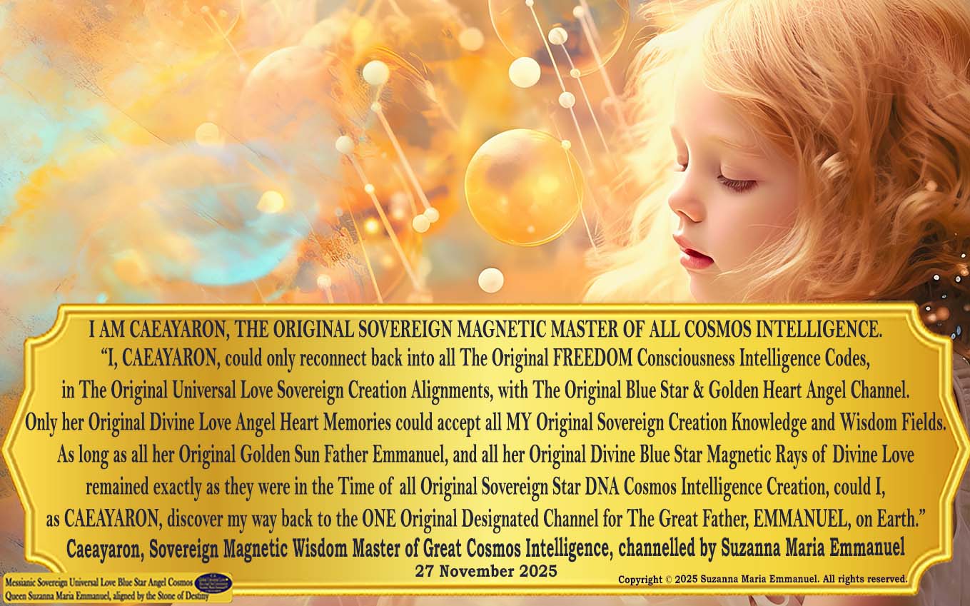 Caeayaron, Sovereign Magnetic Wisdom Master of Great Cosmos Intelligence, channelled by Suzanna Maria Emmanuel, 28 November 2025.