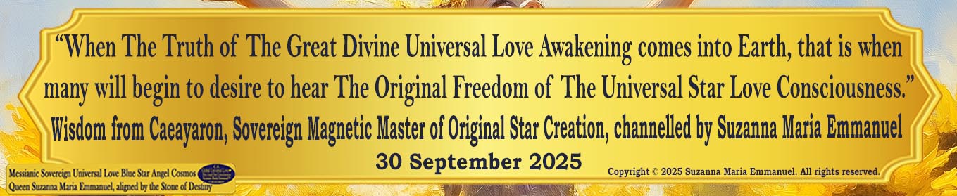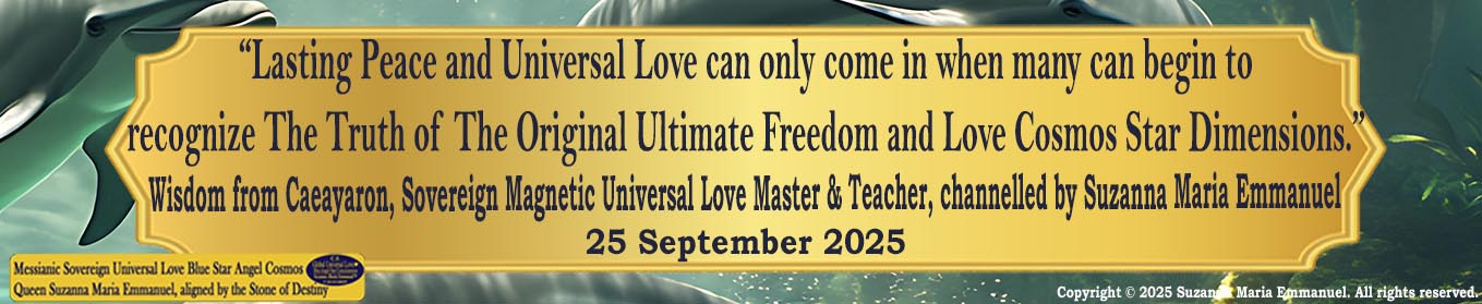 All Suzanna Maria Emmanuel's Original Universal Love Star Transmissions and The Original Universal Healing Codes connect into Sovereign Lord Emmanuel together with Caeayaron's Original Sovereign Cosmos Star Intelligence.