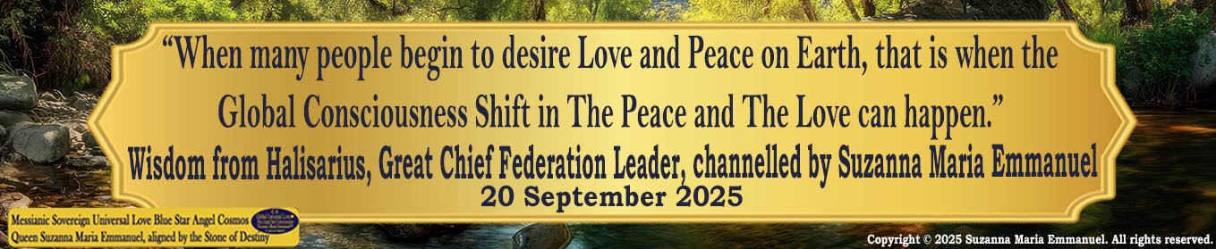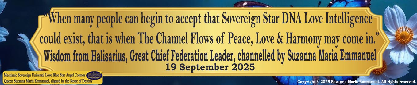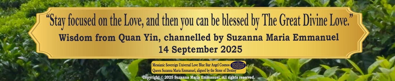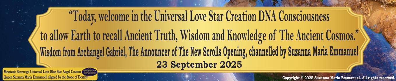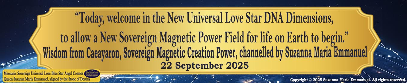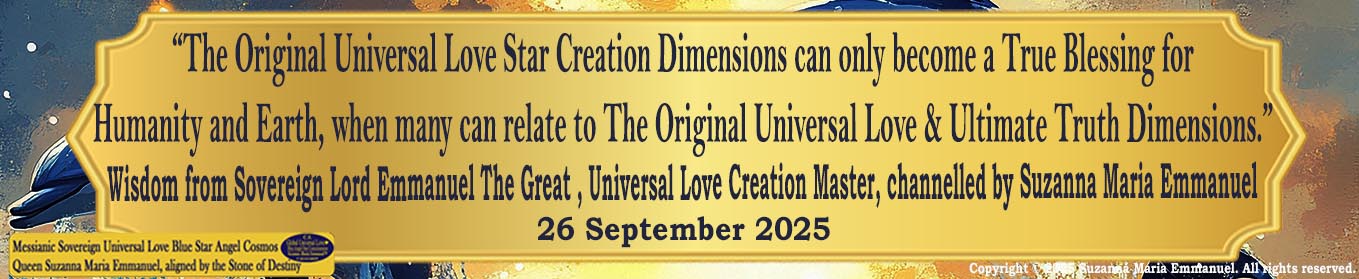Suzanna Maria Emmanuel is The Original Sovereign Universal Love Golden Sun & Blue Star Angel Pineal DNA Transmission Channel.All Suzanna Maria Emmanuel’s Universal Love Original Sovereign Transmissions are all copyright protected by Law and by The Great Cosmos Deep in Space.