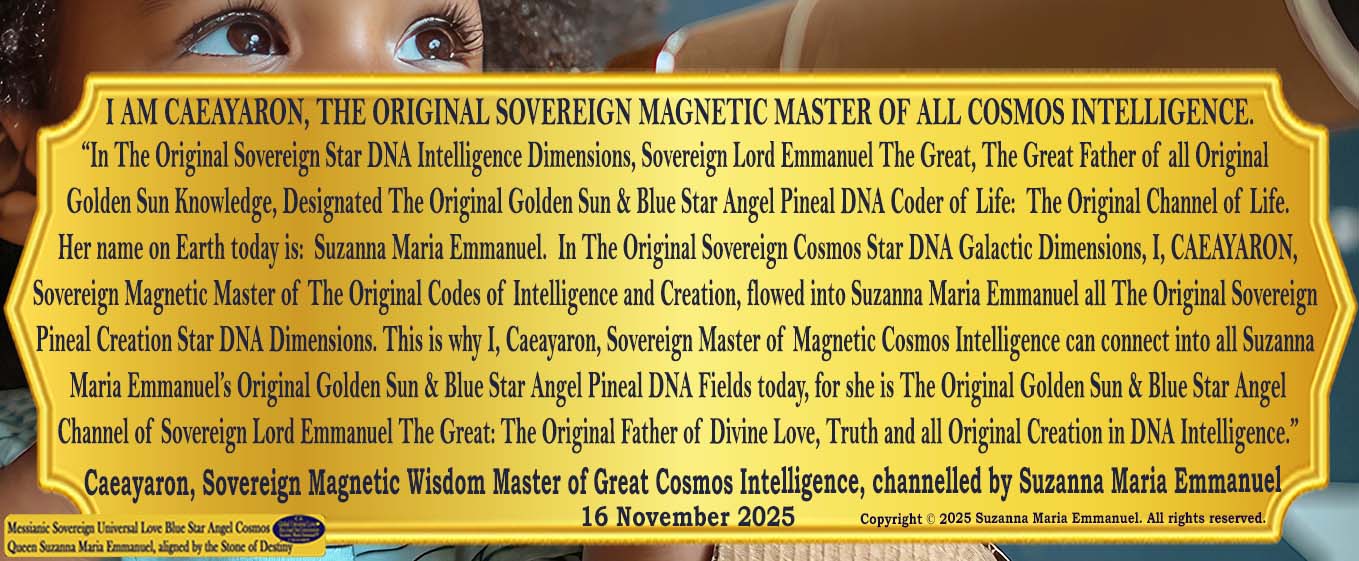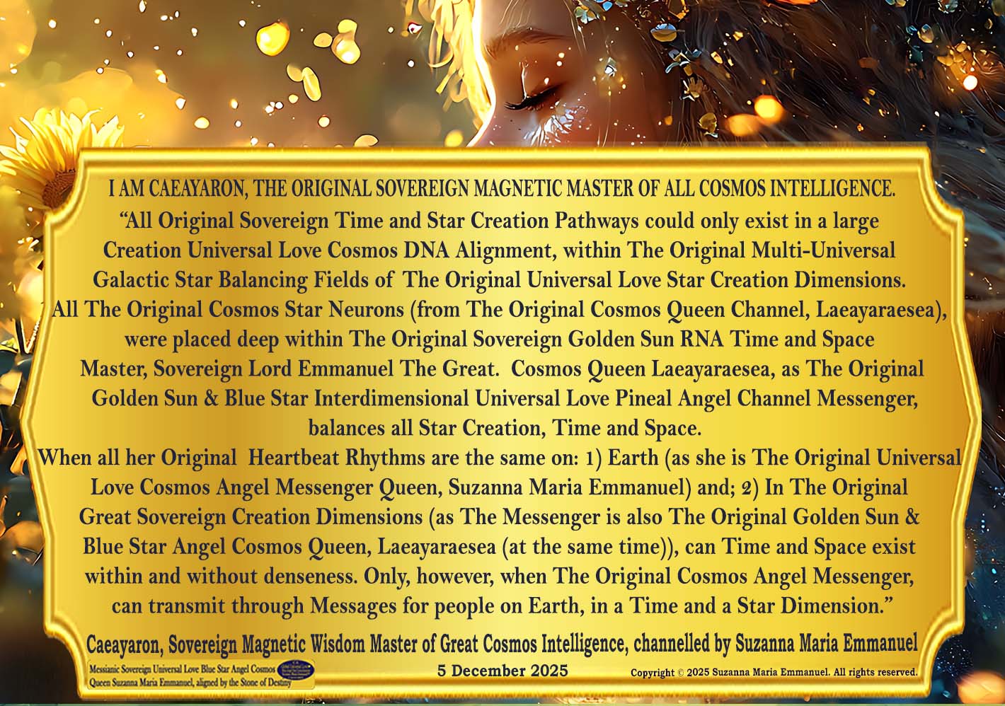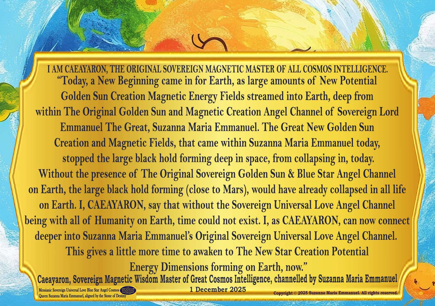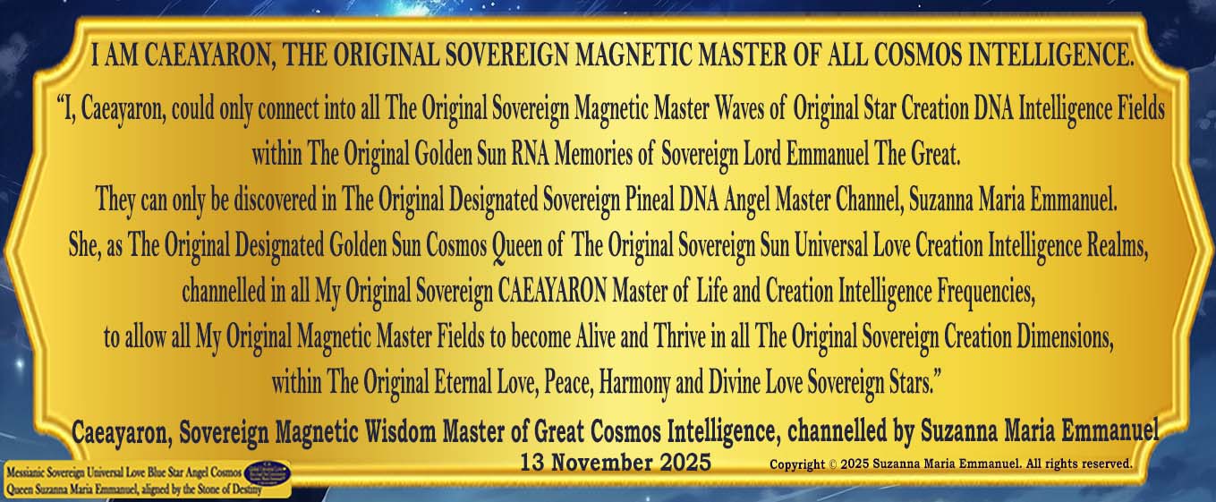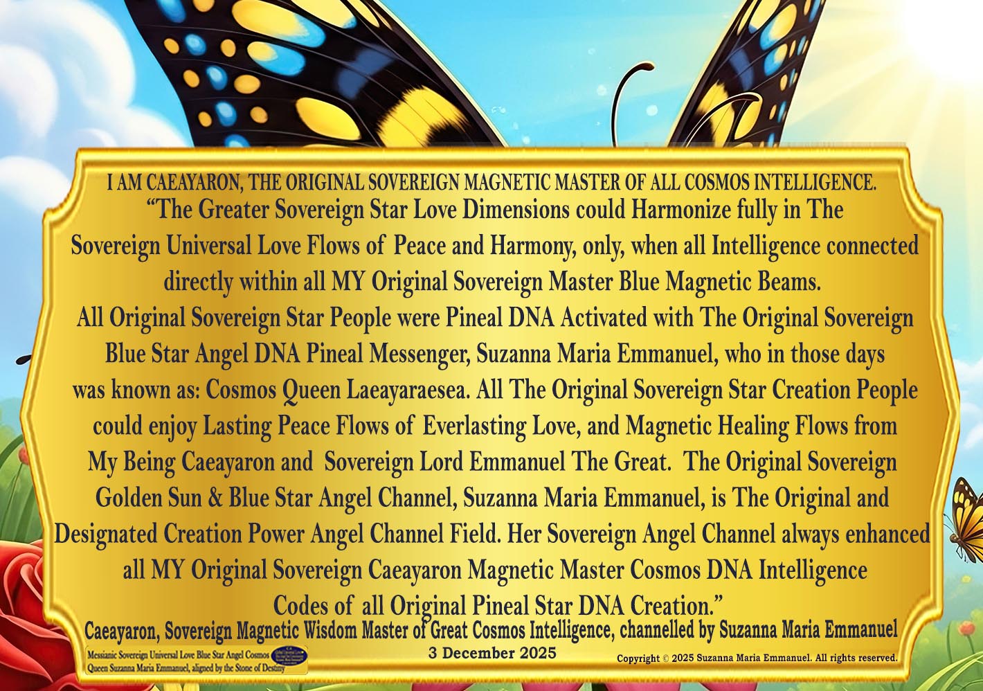 Transmission by Suzanna Maria Emmanuel with CAEAYARON, THE ORIGINAL SOVEREIGN MAGNETIC COSMOS INTELLIGENCE MASTER.