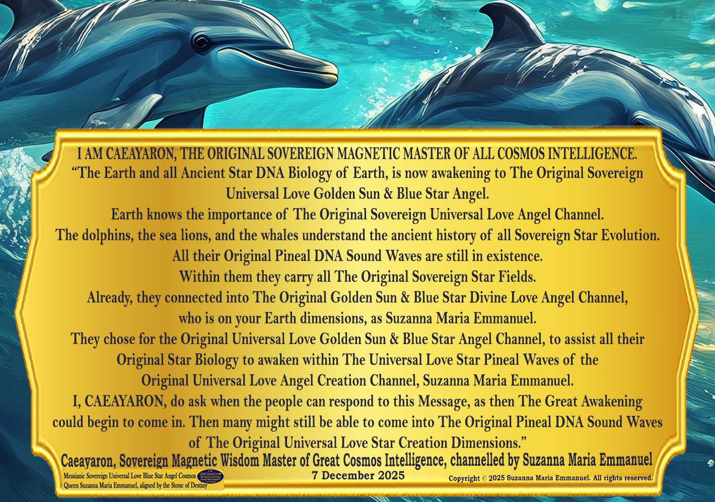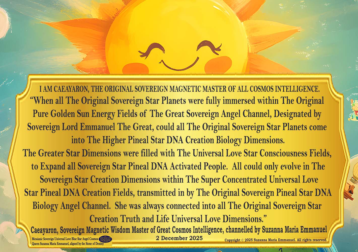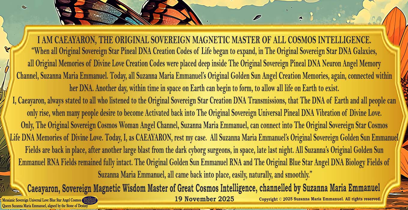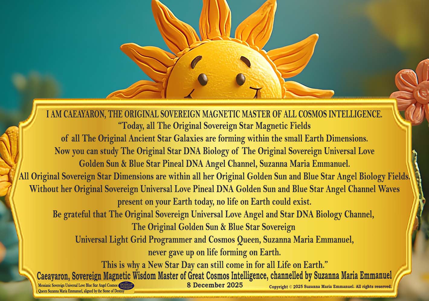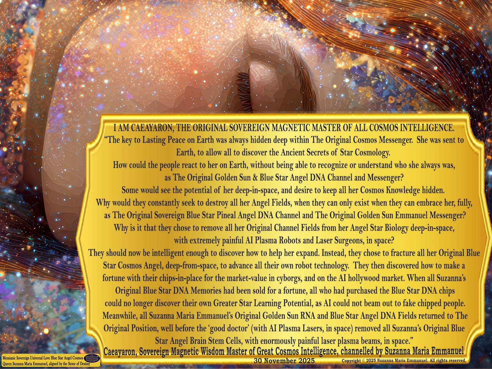 Transmission by Suzanna Maria Emmanuel with CAEAYARON, THE ORIGINAL SOVEREIGN MAGNETIC COSMOS INTELLIGENCE MASTER.