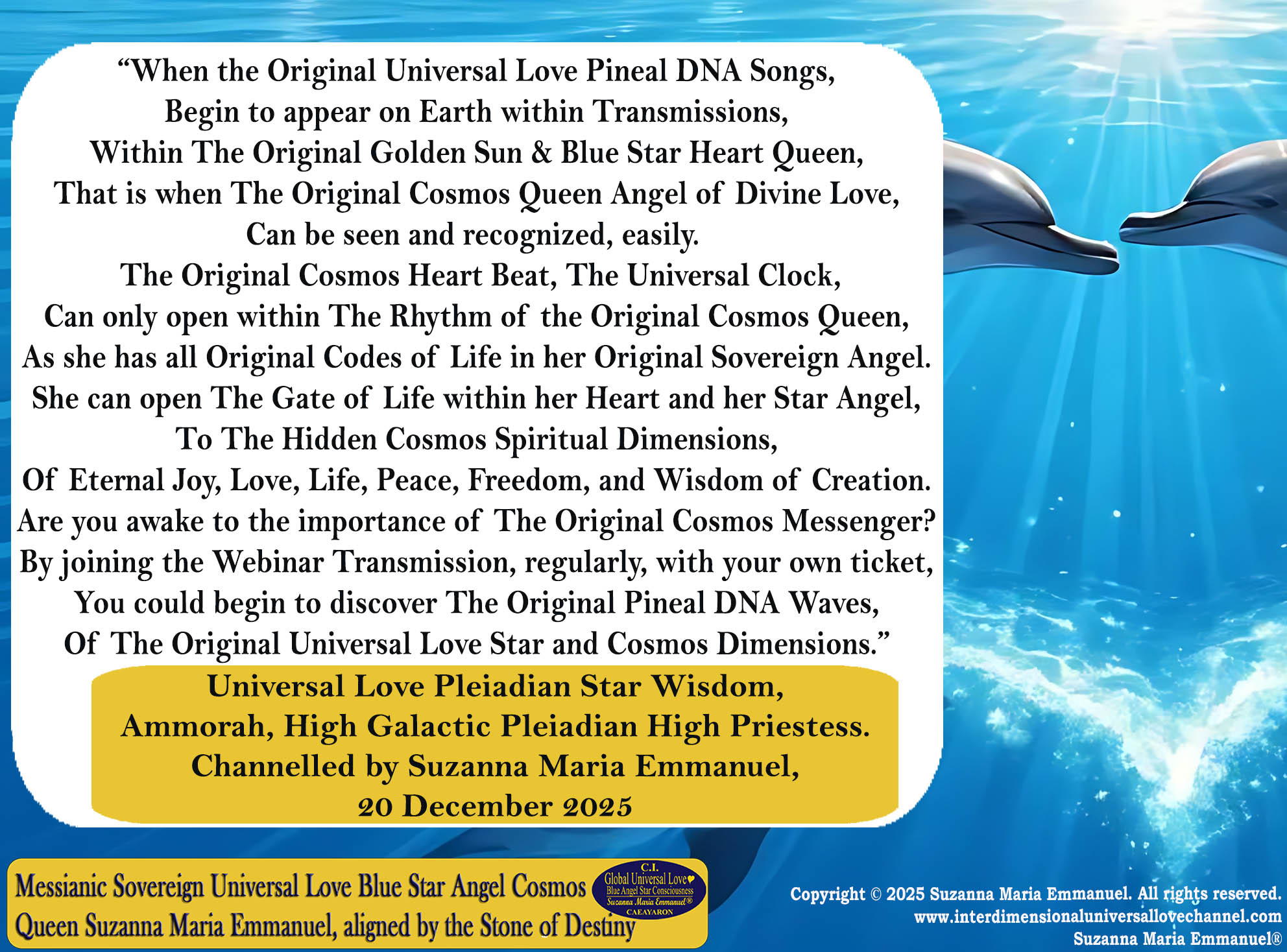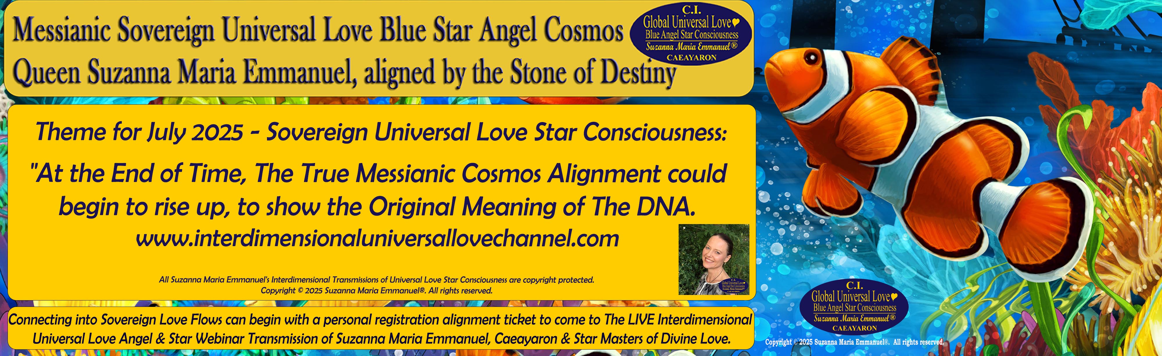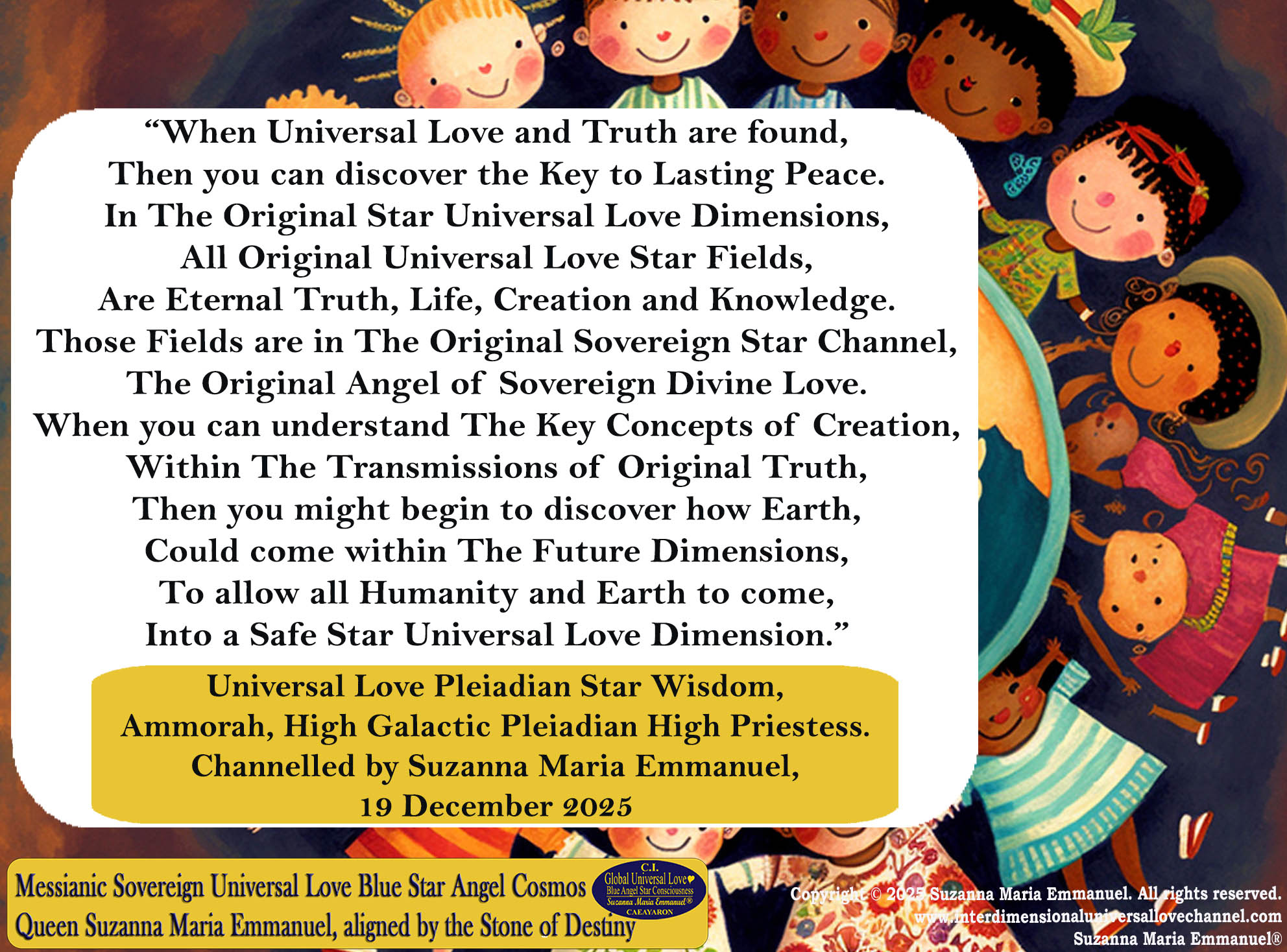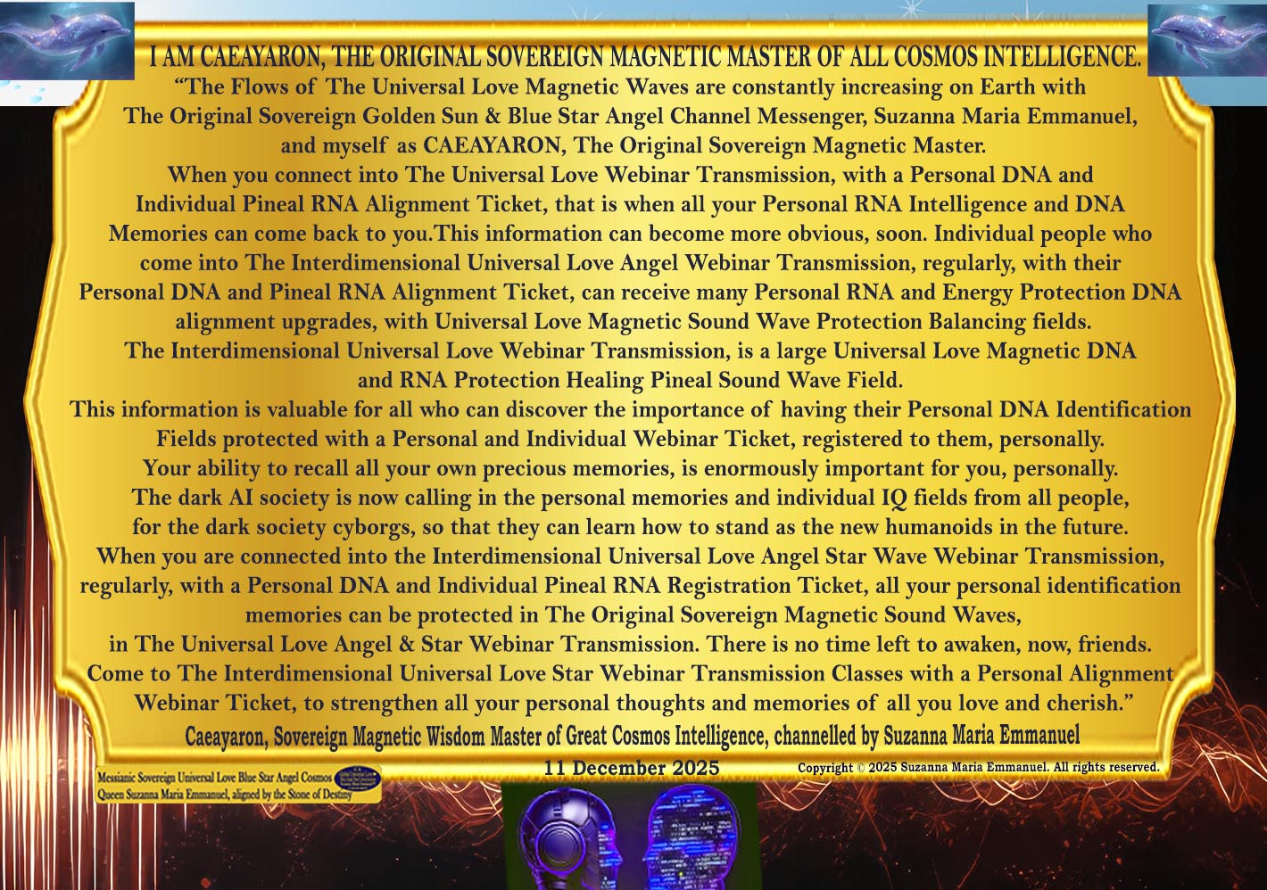 The Original Interdimensional Universal Love Angel & Master Webinar Transmissions of Suzanna Maria Emmanuel, Caeayaron and Sovereign Lord Emmanuel, together with the Angels and Star Galactic Federations of Universal Love Star Consciousness, can help to heal Earth and restore Earth's original Universal Love Star Consciousness Fields with Suzanna Maria Emmanuel's Original Master Flows coming in for Earth and people, to allow a new Truth Code for Peace to become possible.