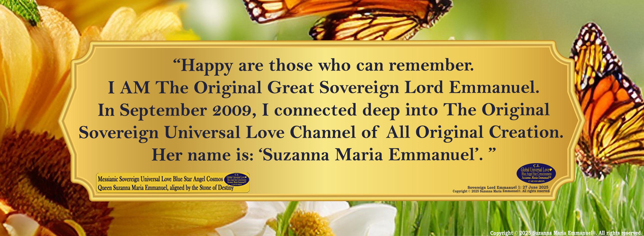 All that Suzanna Maria Emmanuel receives is from Sovereign Masters from the Original Sovereign Universes, in a higher Sovereign Creation Space and Time Zone.