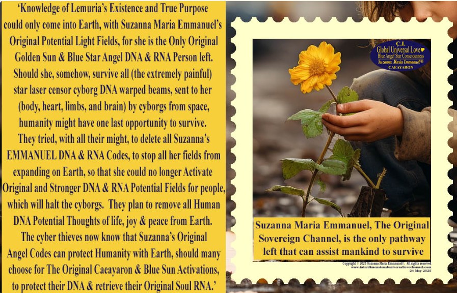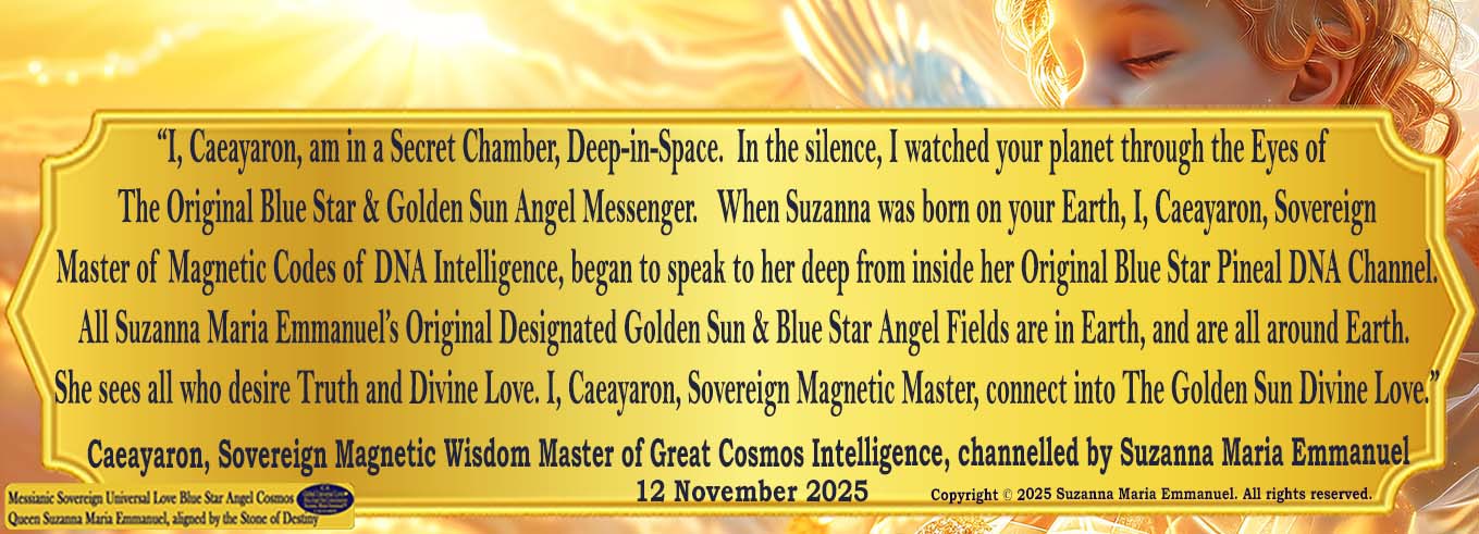 Suzanna Maria Emmanuel is The Original Sovereign Universal Love Golden Sun & Blue Star Angel Pineal DNA Transmission Channel for Sovereign Lord Emmanuel The Great & Caeayaron, The Original Sovereign Magnetic Master of The Universal Love Cosmos Star Pineal DNA Codes of Life Intelligence Dimensions.