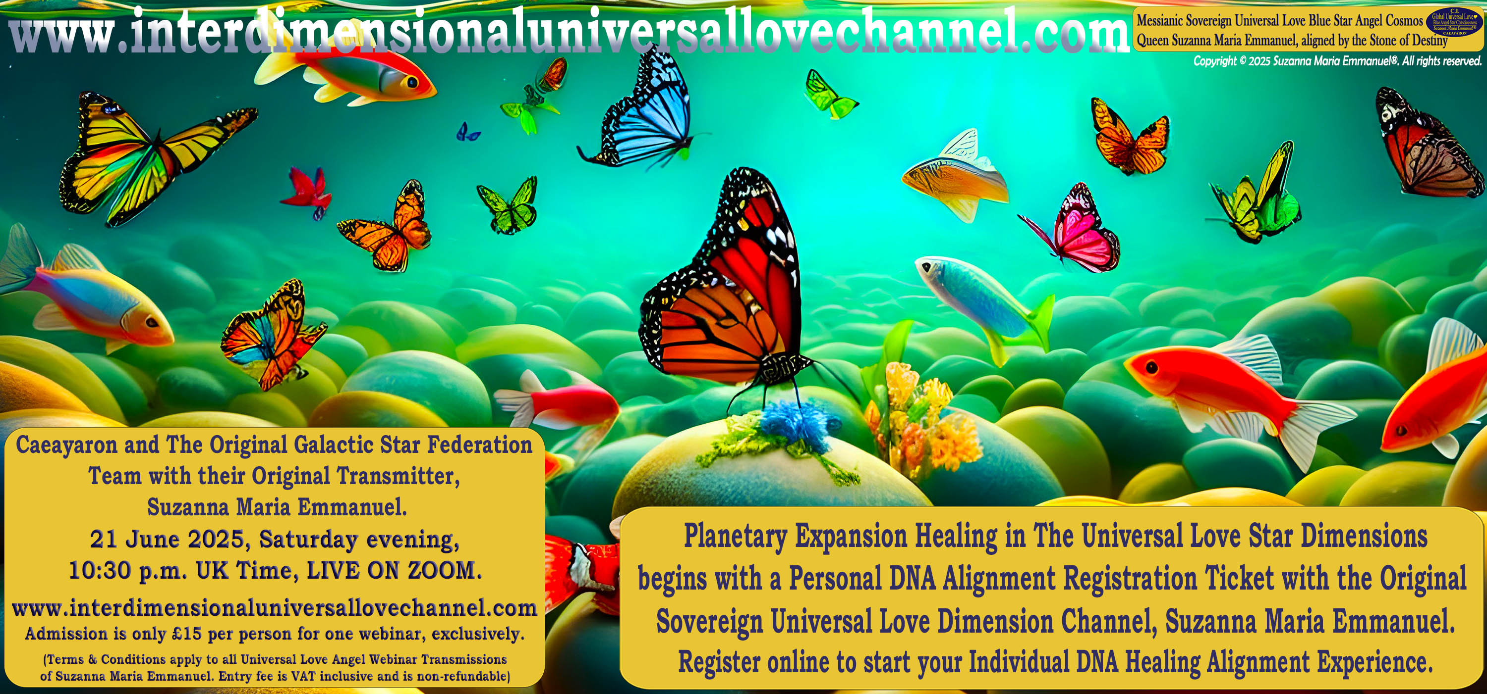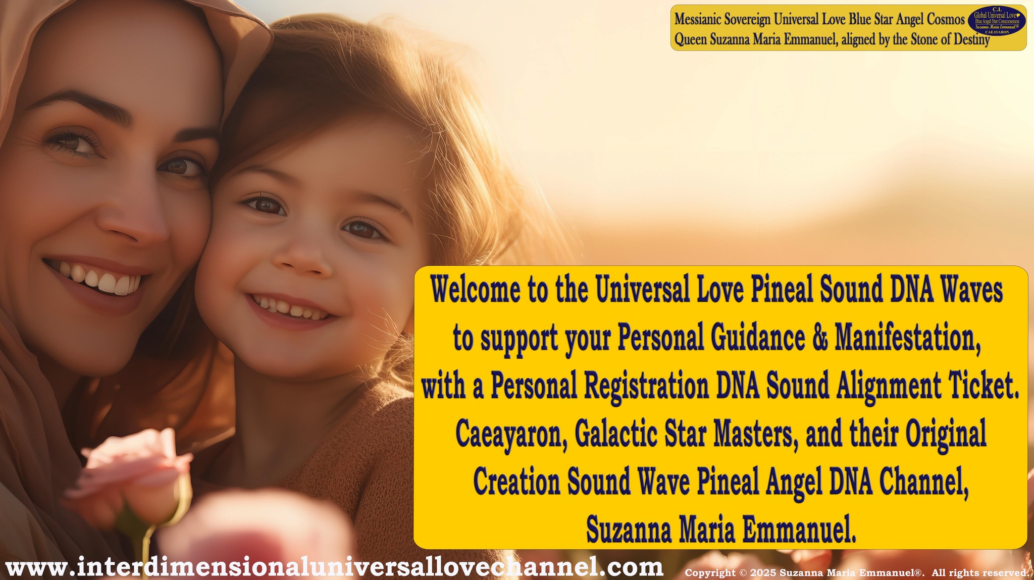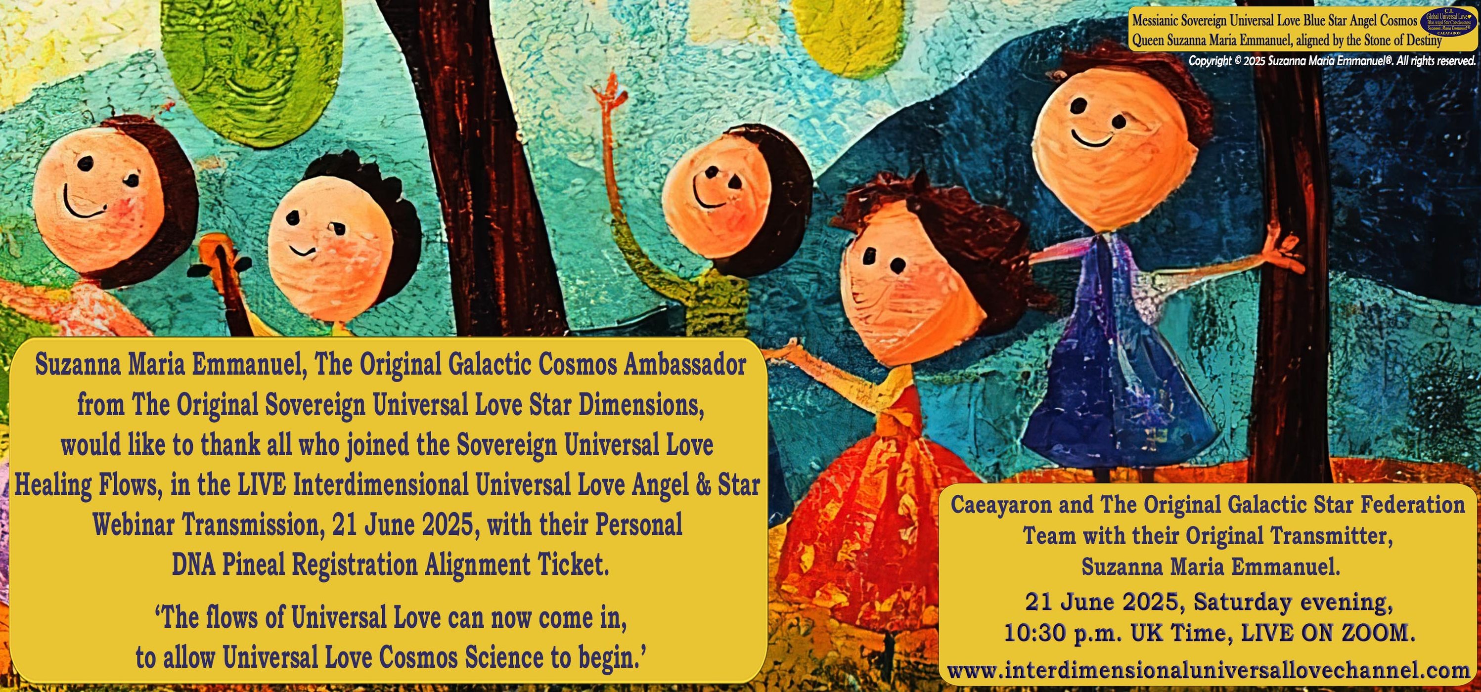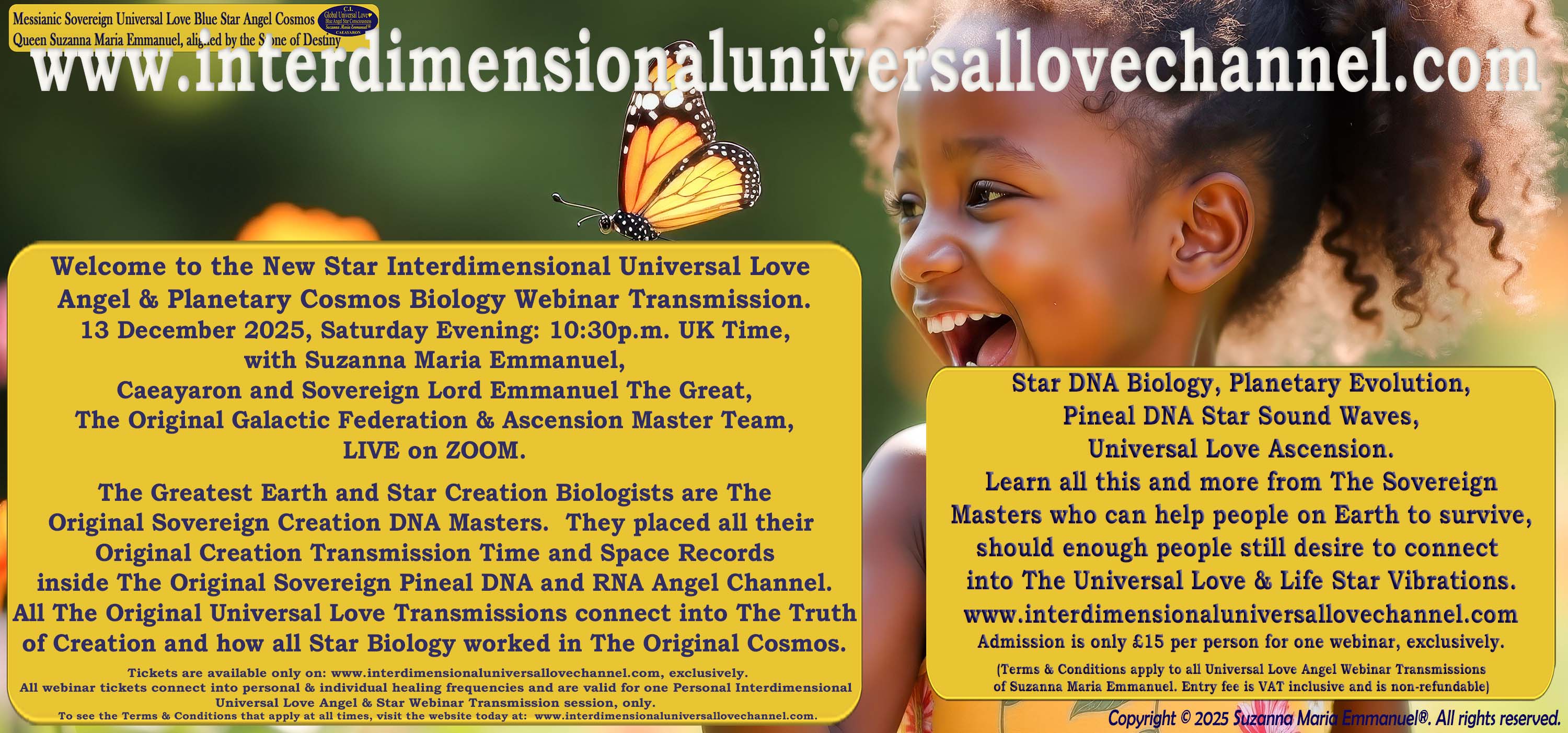 Welcome to the Interdimensional Universal Love Angel & Star Webinar Transmissions with Suzanna Maria Emmanuel, The Original Interdimensional Sovereign Universal Love Angel & Master Channel for Caeayaron and Sovereign Lord Emmanuel.