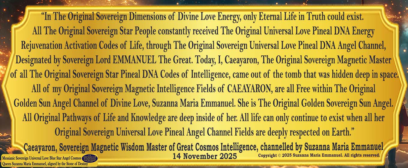 All my Original Sovereign Creation Alignments of CAEAYARON are FREE to connect into the Original SOVEREIGN EMMANUEL CHANNEL, Suzanna Maria Emmanuel.