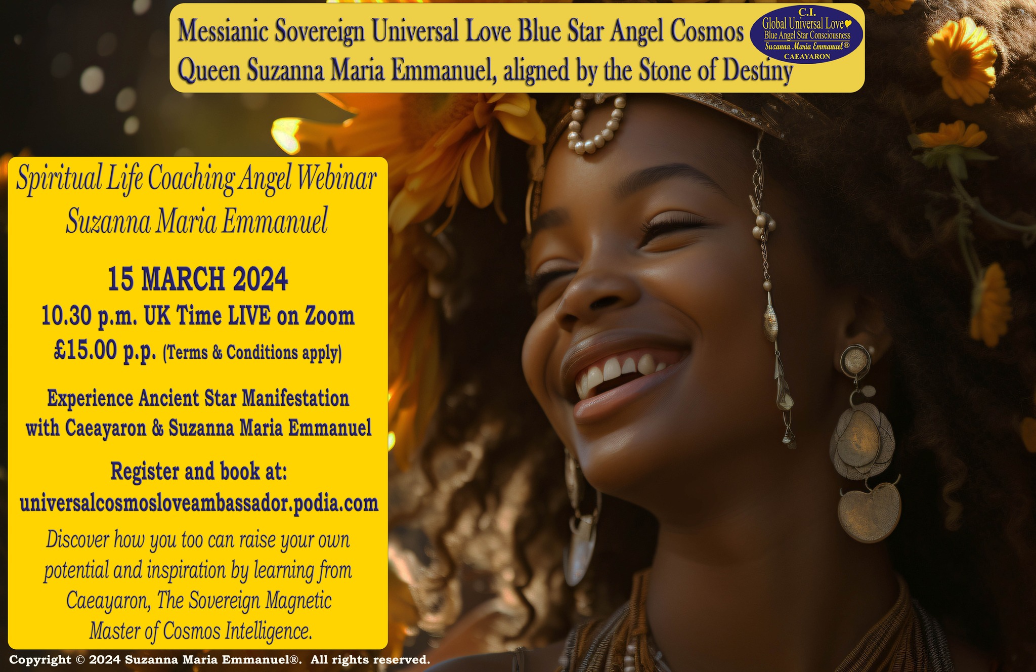 On 15 March 2024, the third LIVE Universal Love Spiritual Life Coaching, Interdimensional Angel Webinar Transmission was presented by Suzanna Maria Emmanuel LIVE, on Zoom.