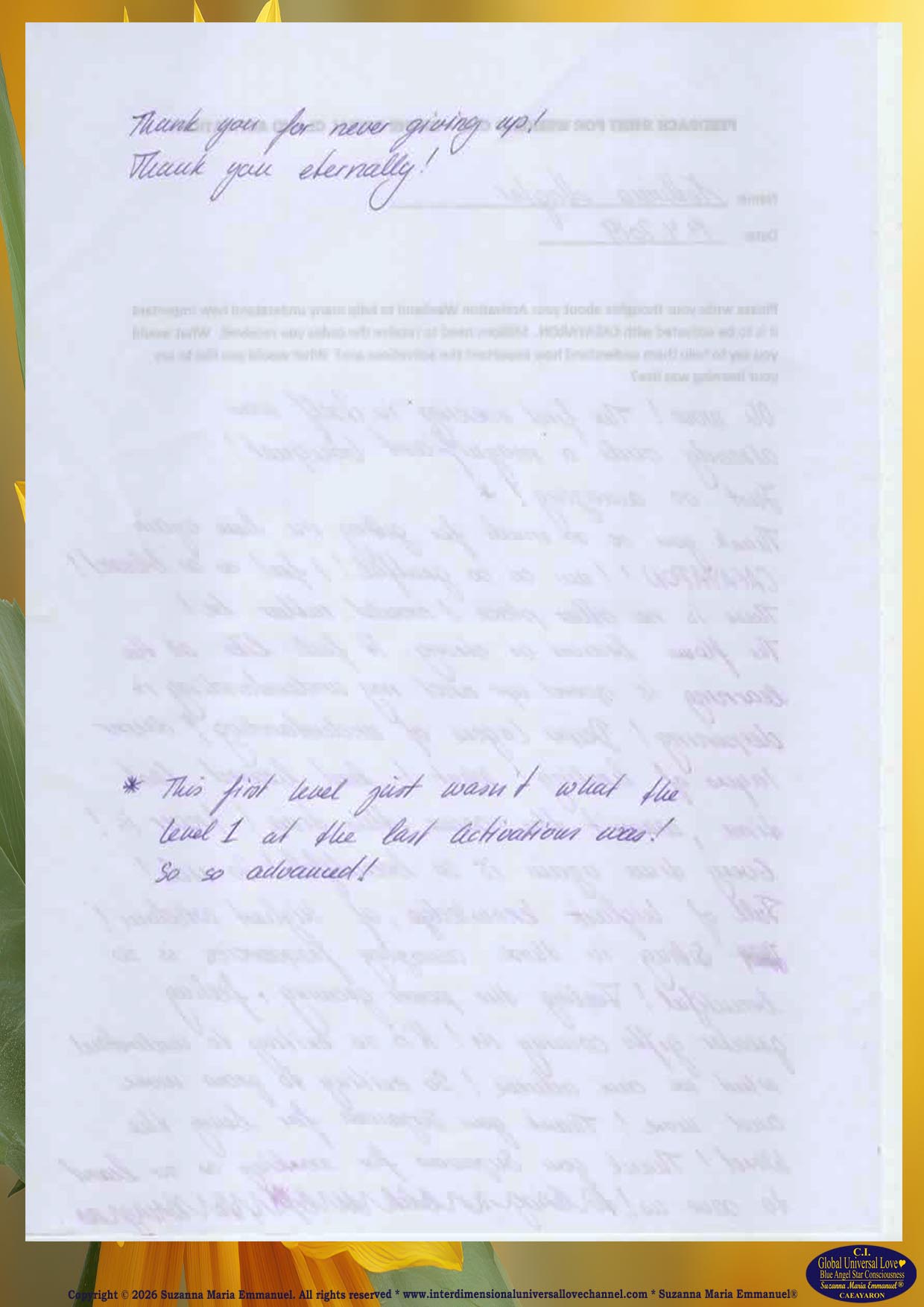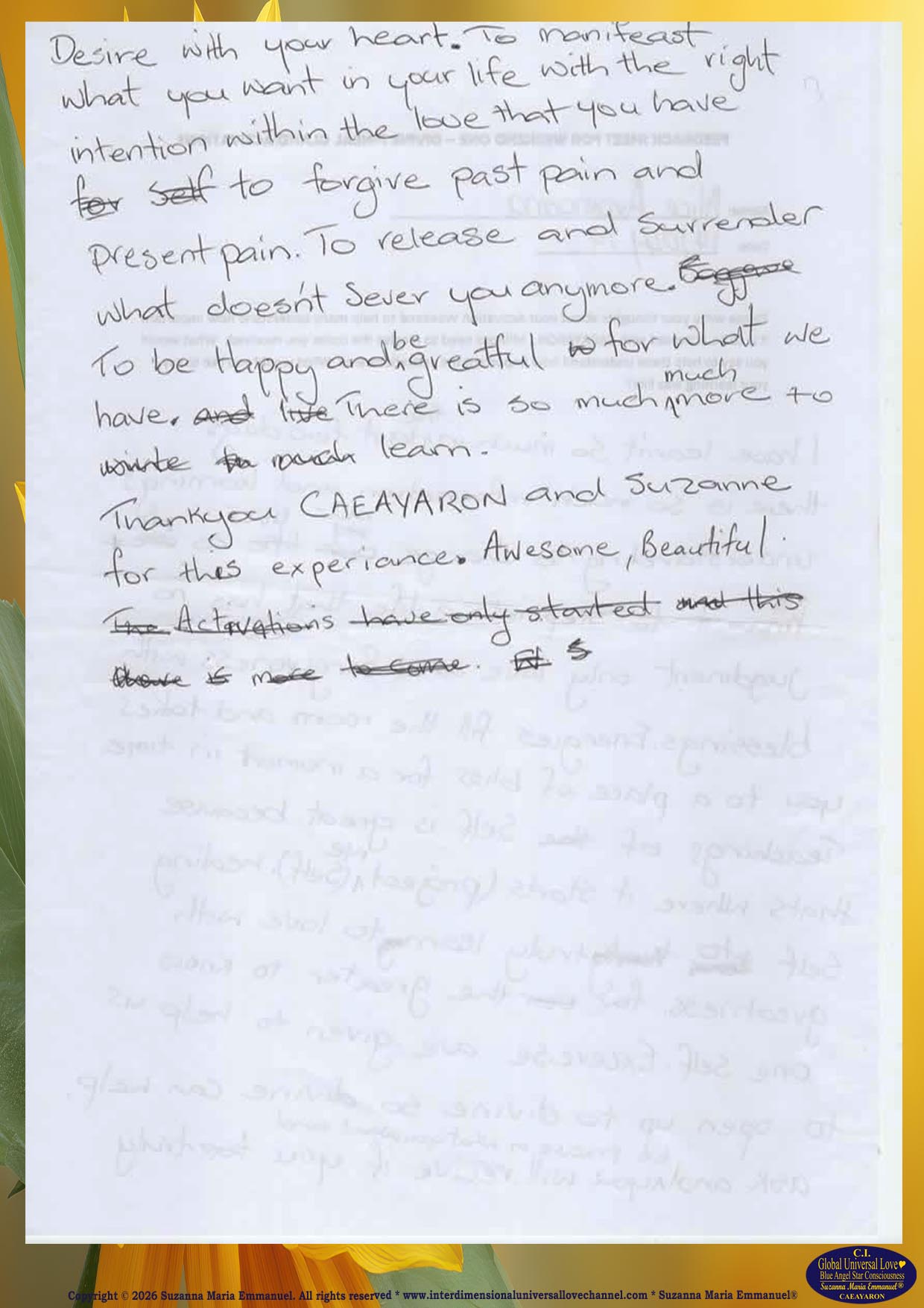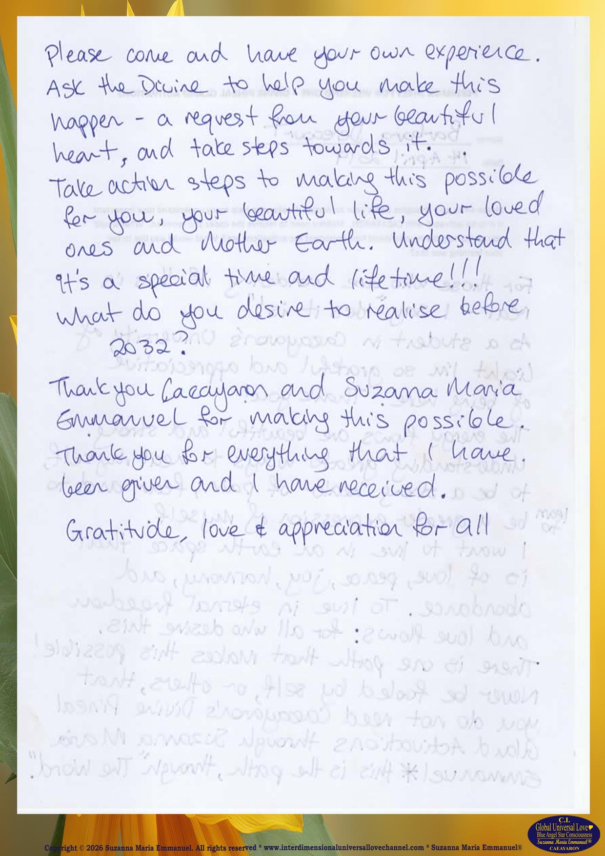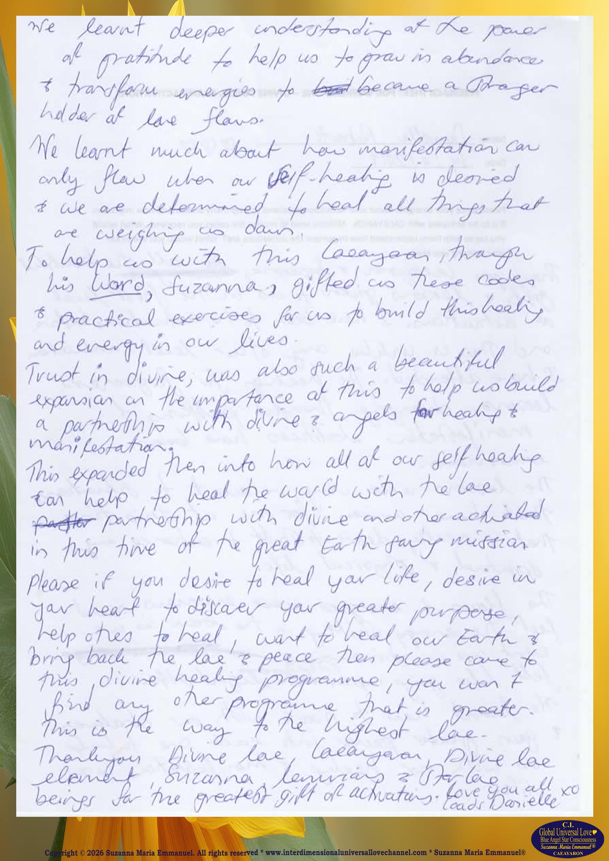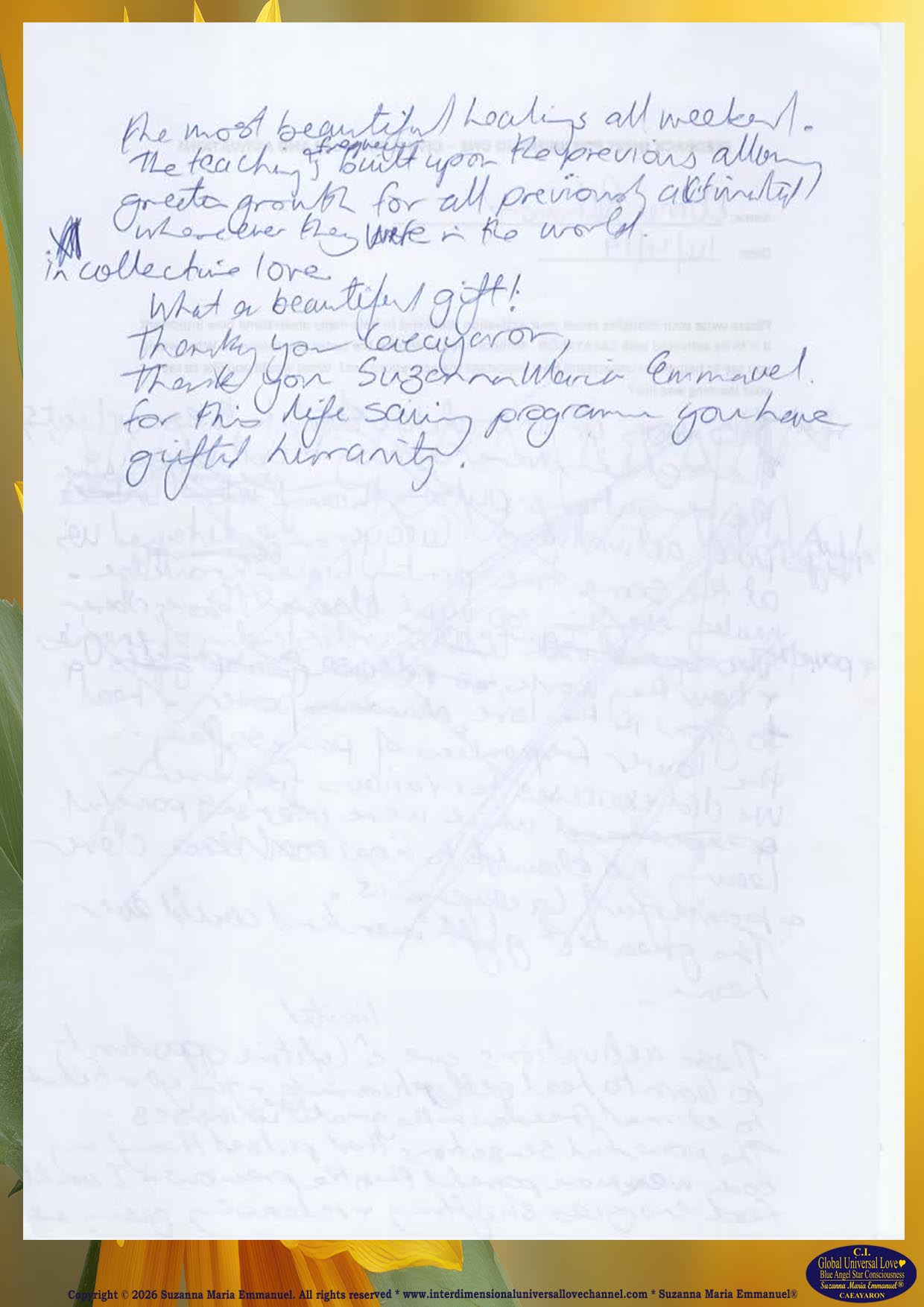 All Suzanna Maria Emmanuel's Original Star Intellect Transmissions of Universal Love Star Consciousness are trademarked and they all are copyright protected with a Professional Legal Disclaimer & Indemnity, Copyright Protection, Terms & Conditions and Trademark Clause. Suzanna Maria Emmanuel®