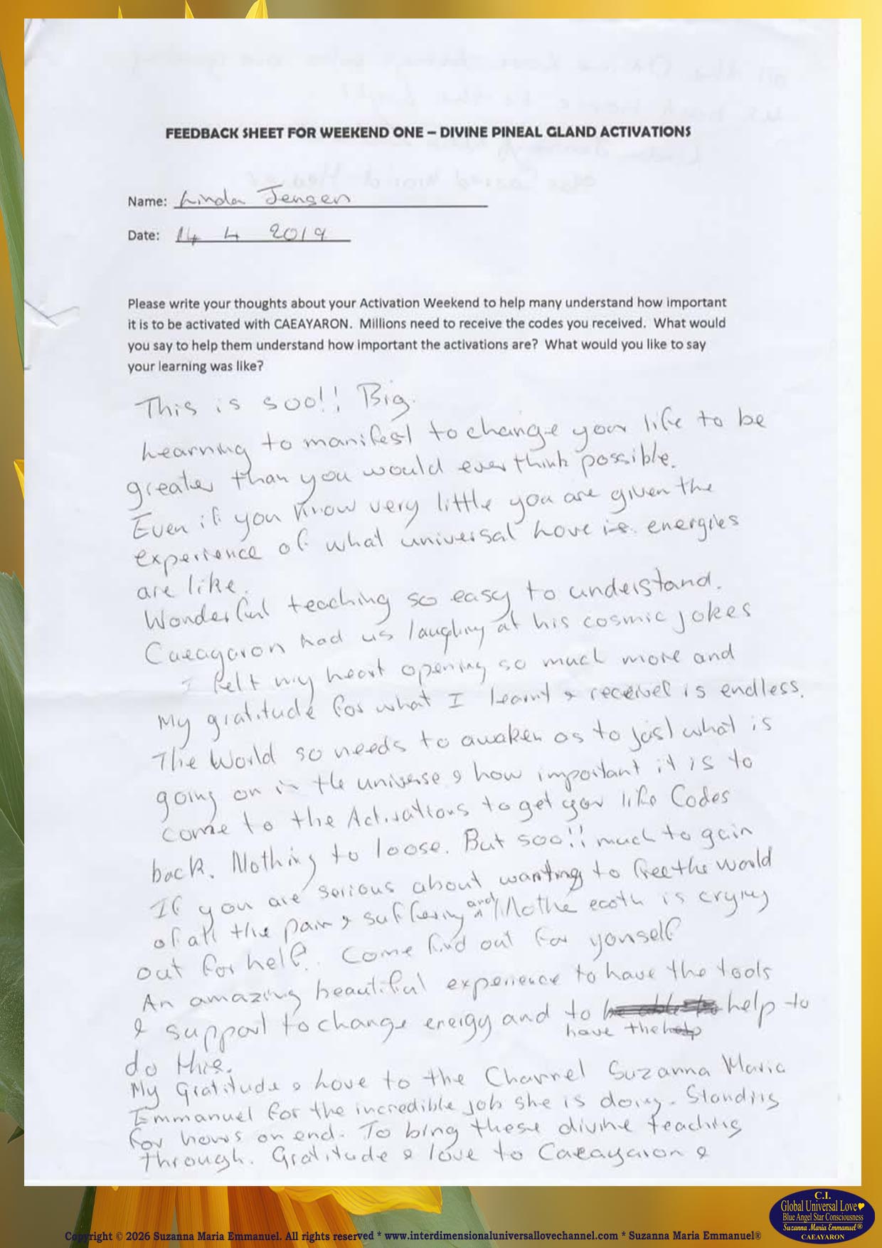 14. Testimony from Linda: The Divine and Universal Love Pineal Gland DNA Activation Events: April 2019.