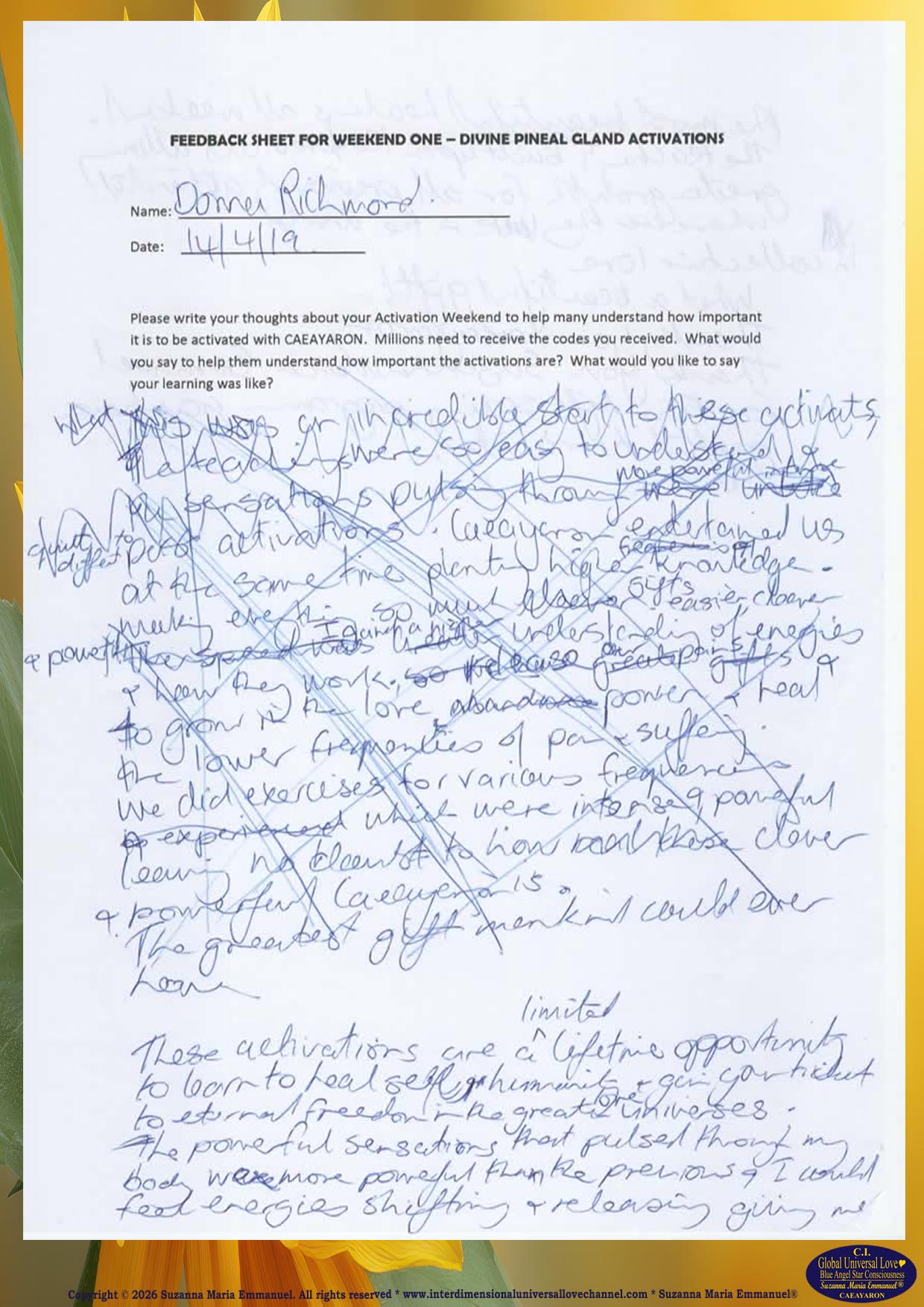 13. Testimony from Donna: The Divine and Universal Love Pineal Gland DNA Activation Events: April 2019.