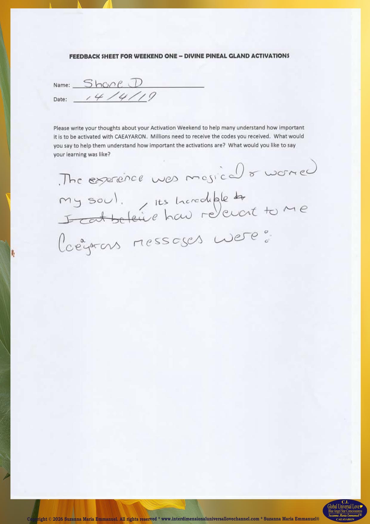 15. Testimony from Shane: The Divine and Universal Love Pineal Gland DNA Activation Events: April 2019.