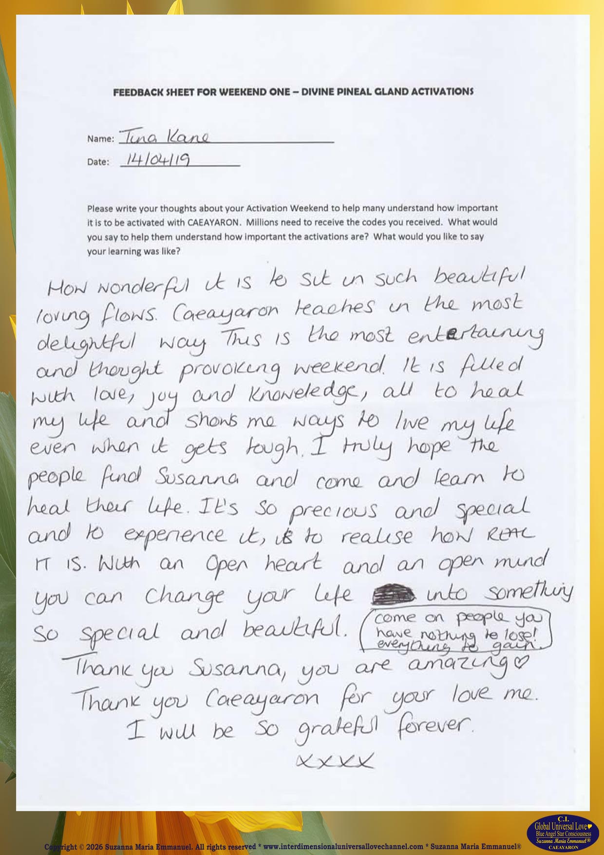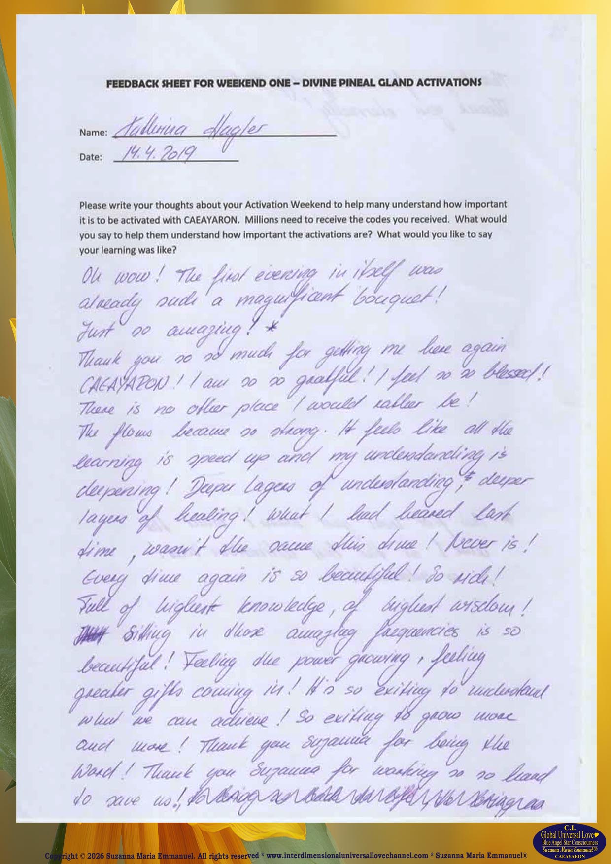 20. Testimony from Kathrina: The Divine and Universal Love Pineal Gland DNA Activation Events: April 2019.