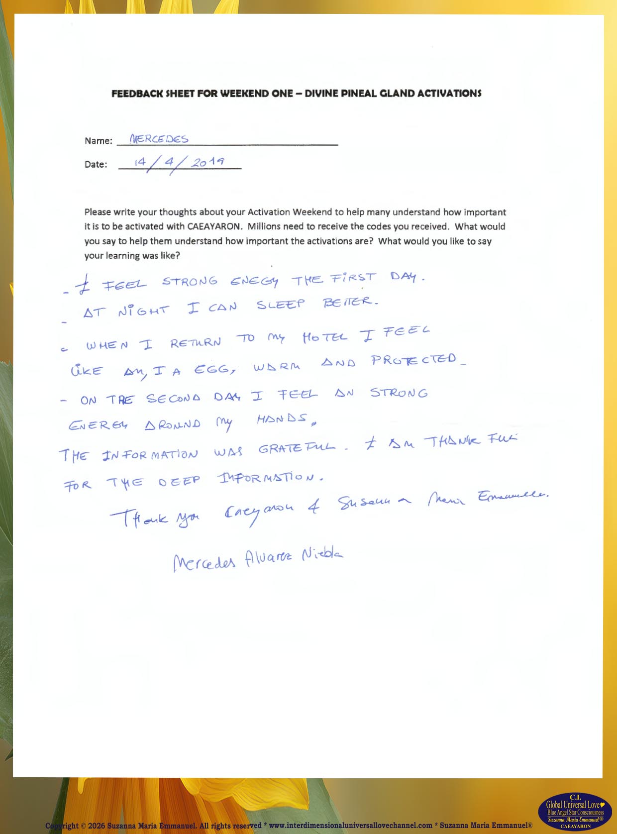 58. Testimony from Mercedes: The Divine and Universal Love Pineal Gland DNA Activation Events: April 2019.