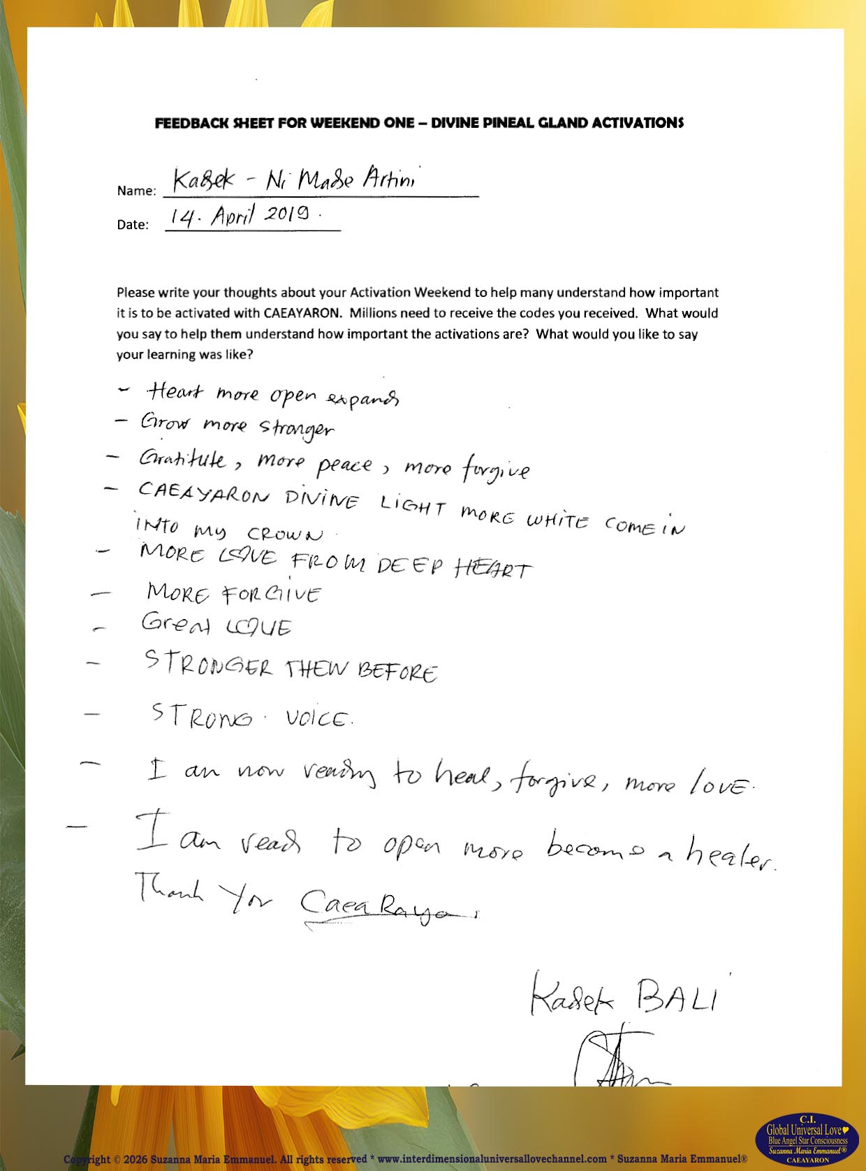 63. Testimony from Kadek: The Divine and Universal Love Pineal Gland DNA Activation Events: April 2019.
