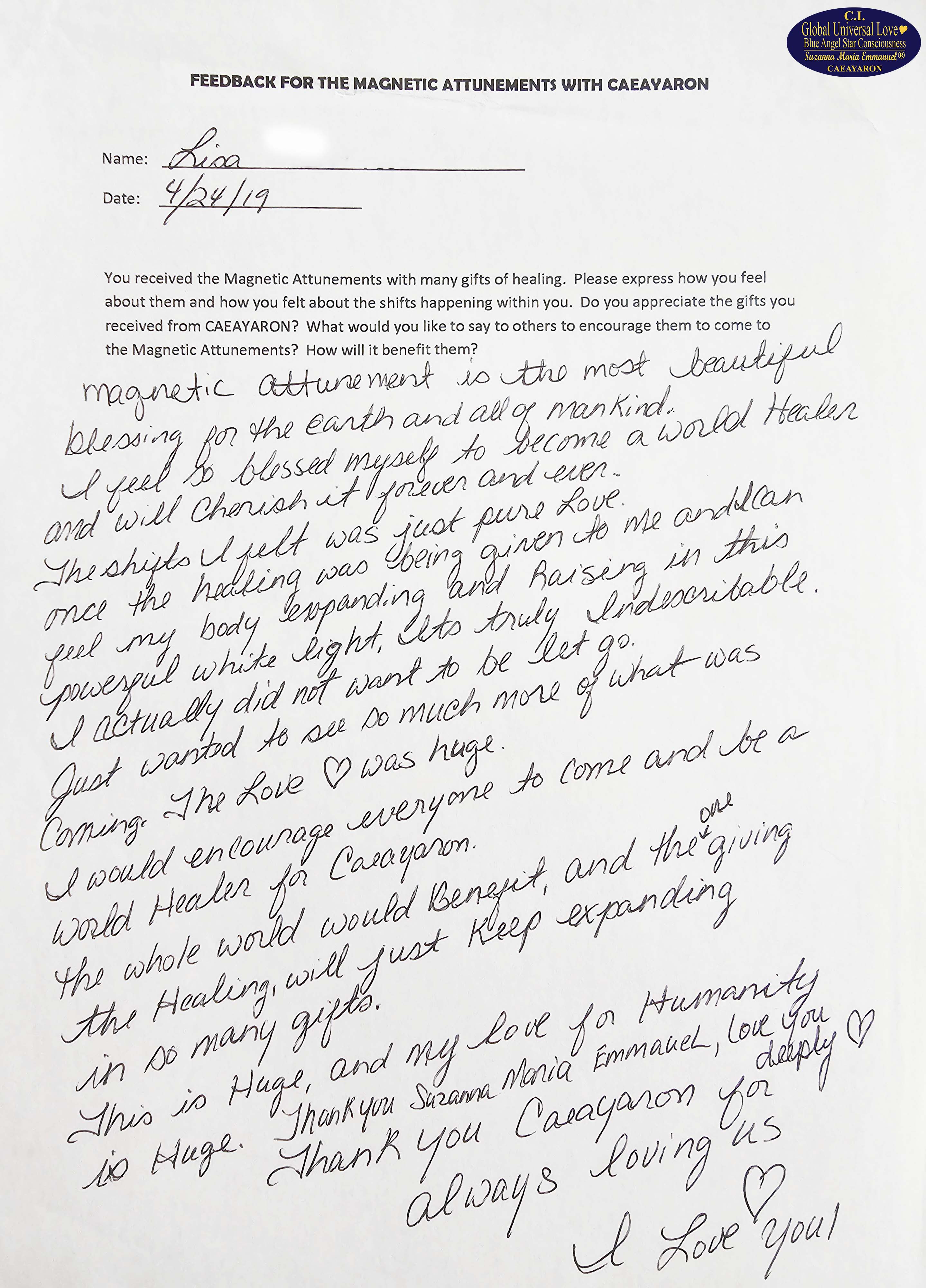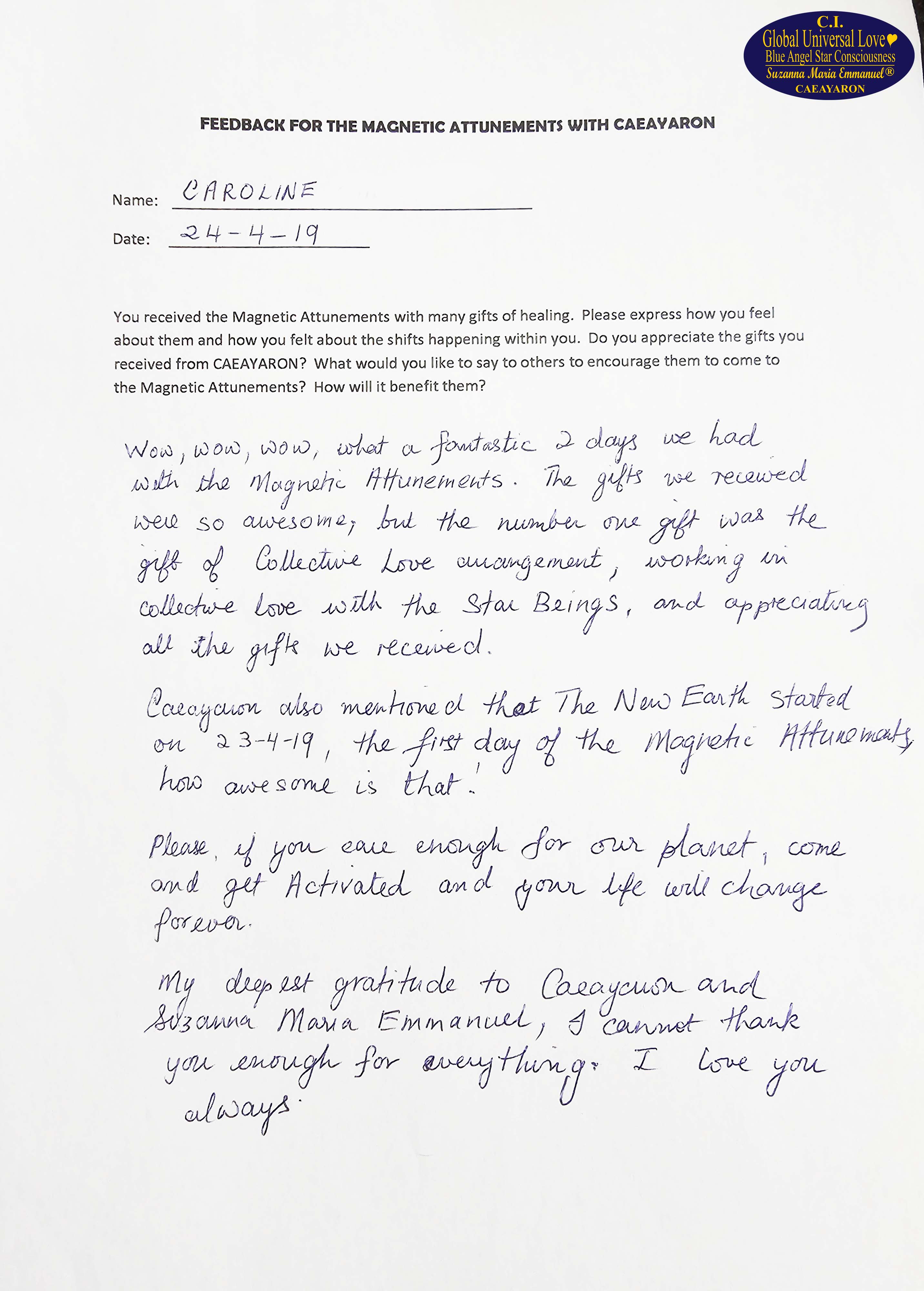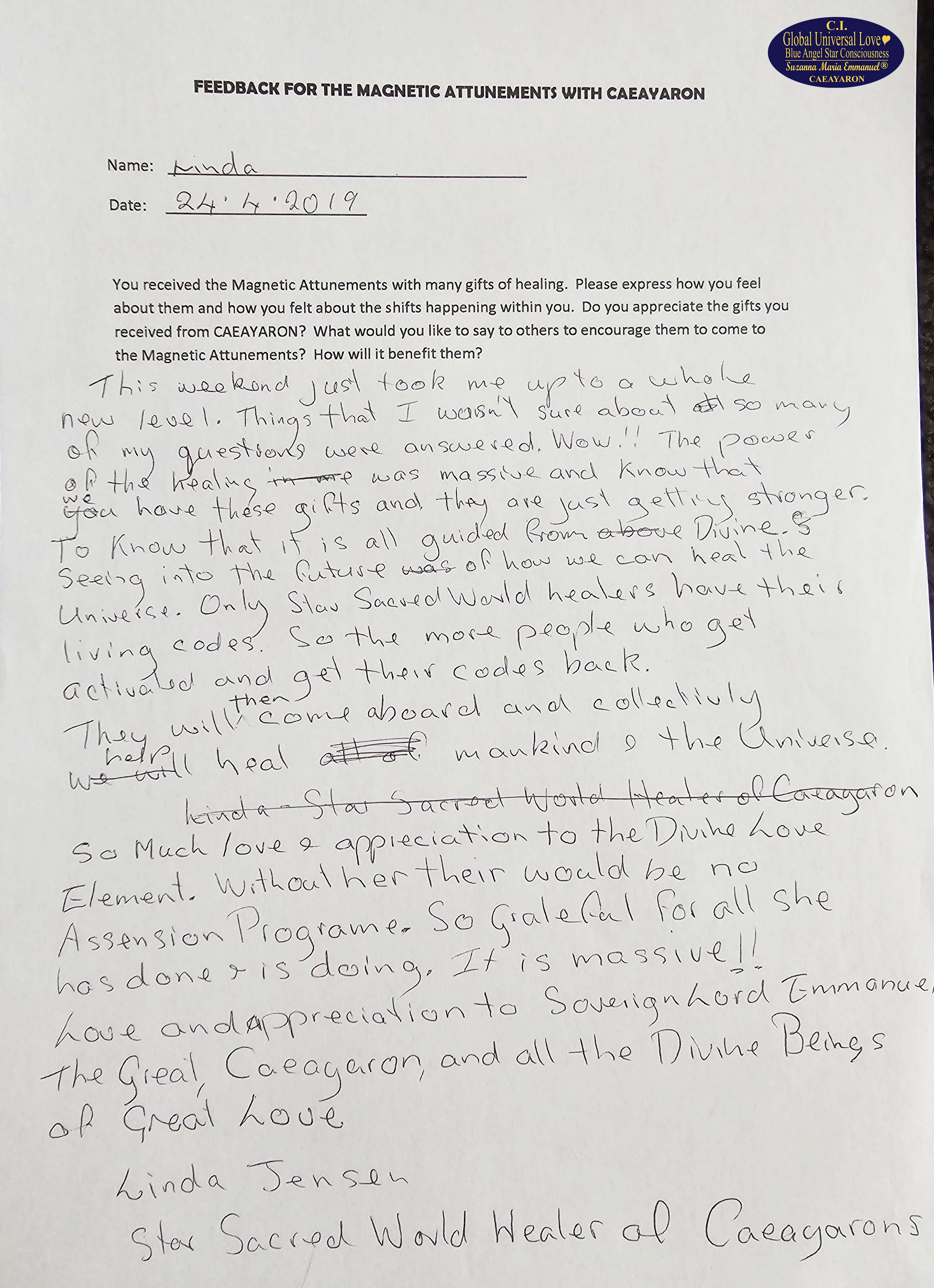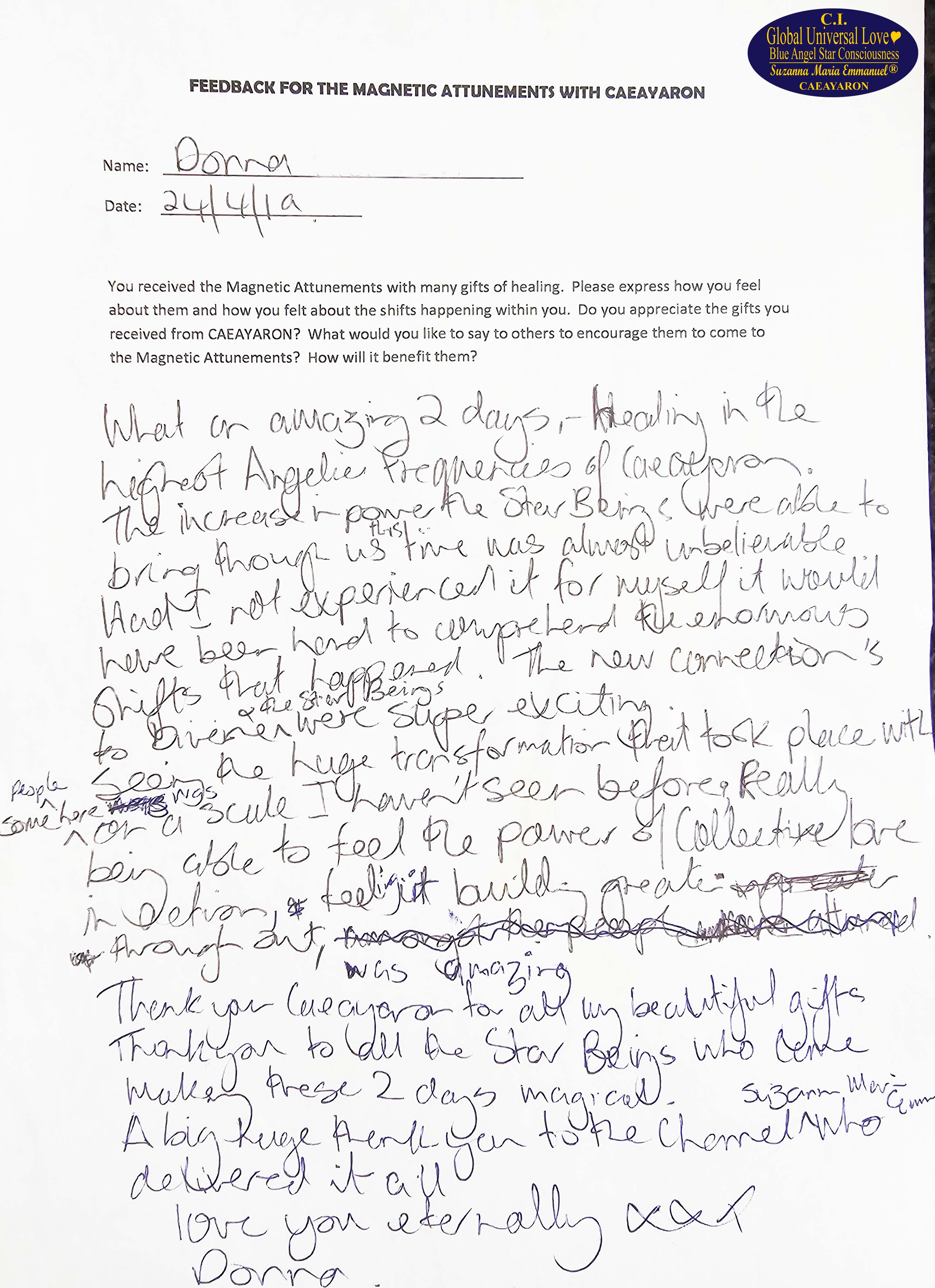Suzanna Maria Emmanuel is The Original Sovereign Interdimensional Universal Love Neuron Star Creation DNA & RNA Intelligence Pineal Angel Channel Pathway. She began to work as The Original Sovereign Universal Love Angel Channel in front of groups of people, LIVE, since 2010. All her recordings were recorded.