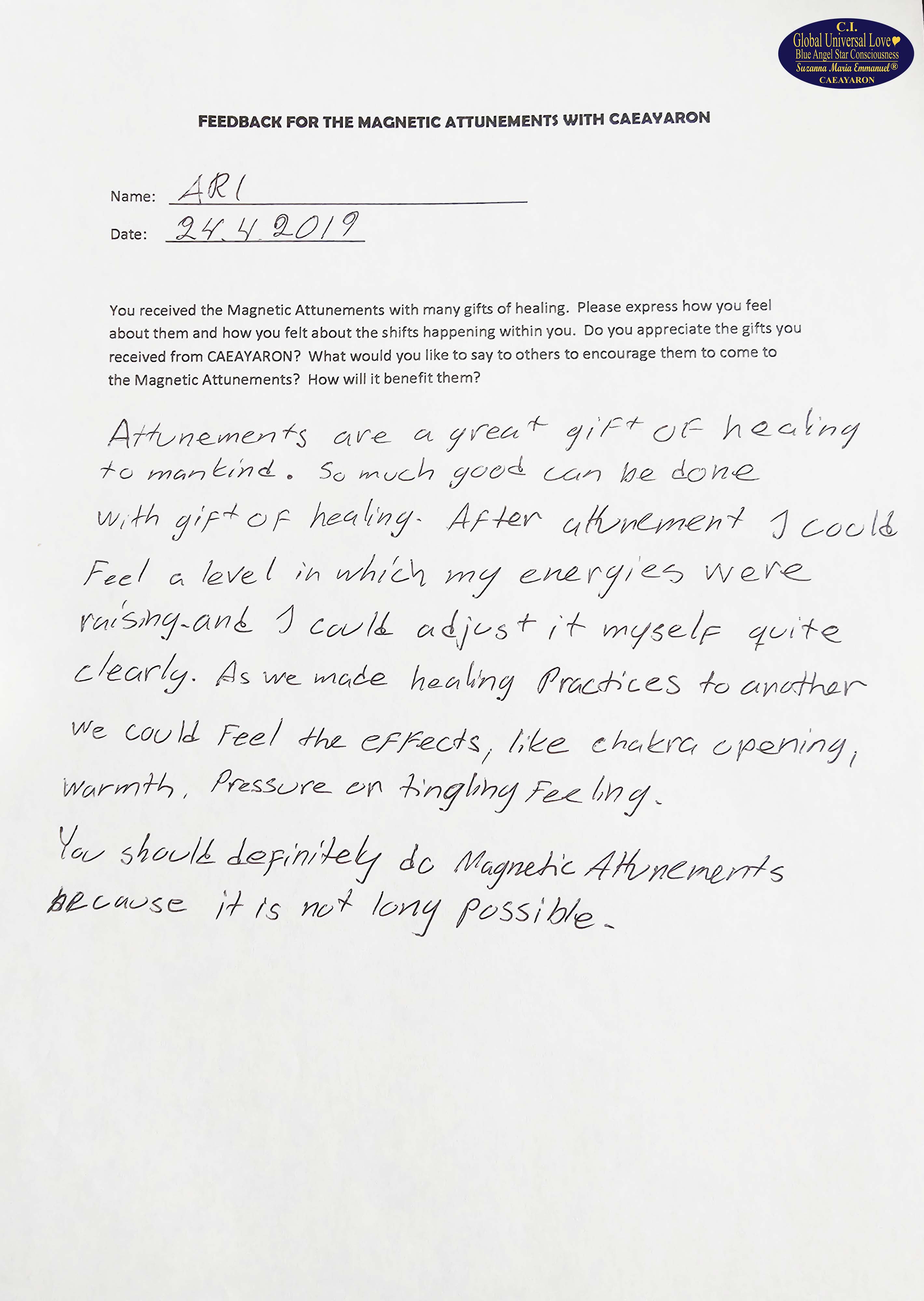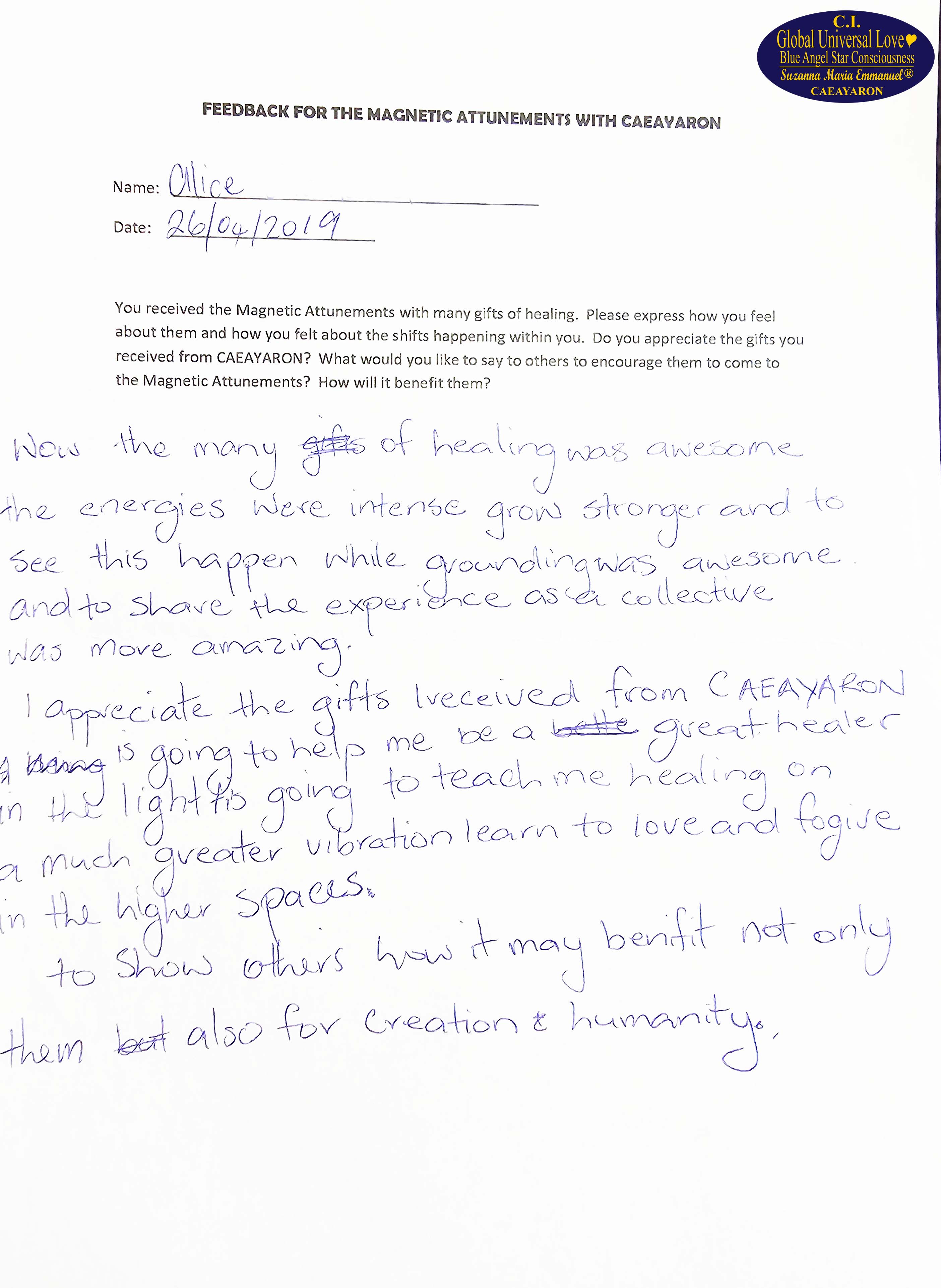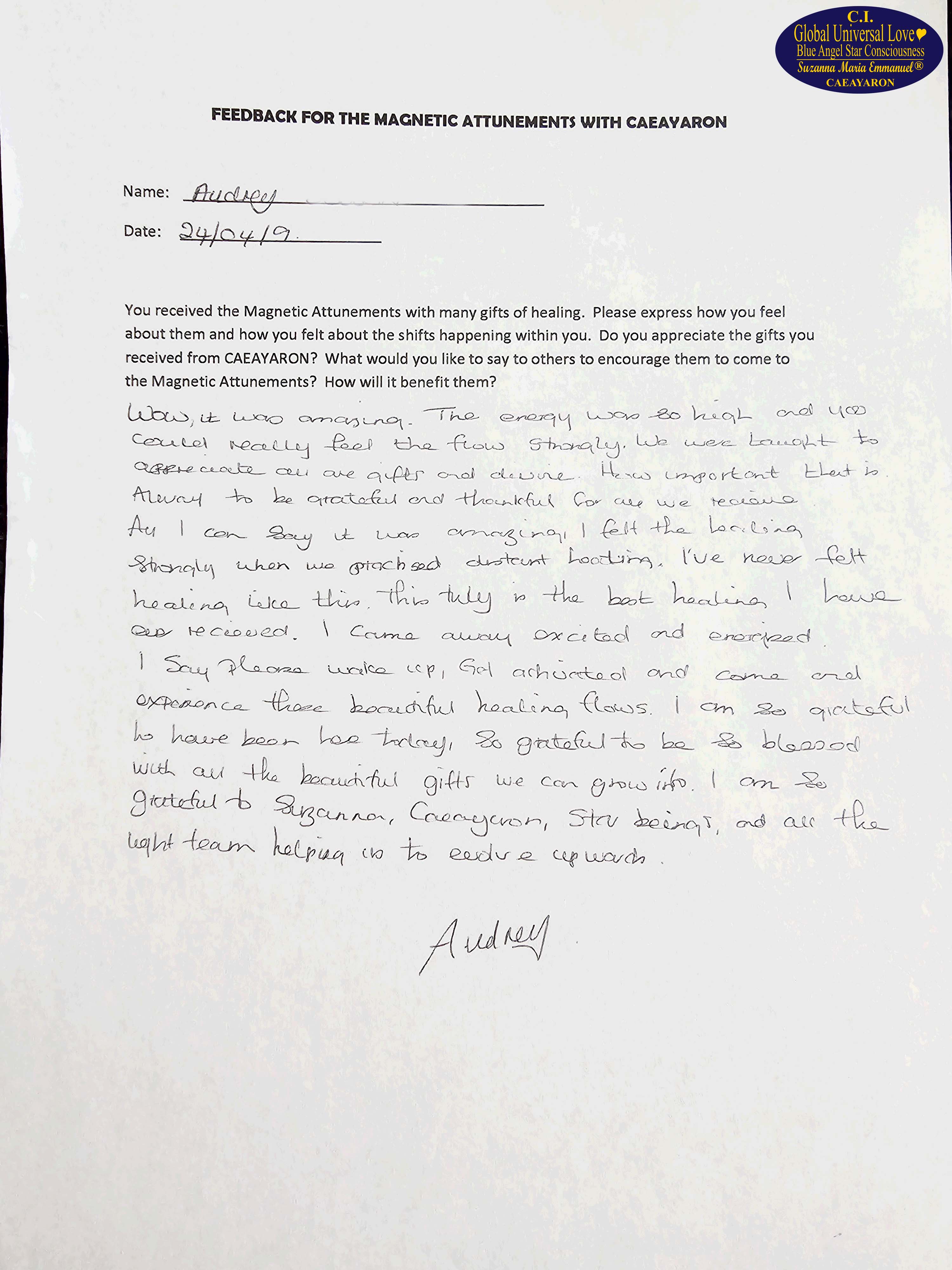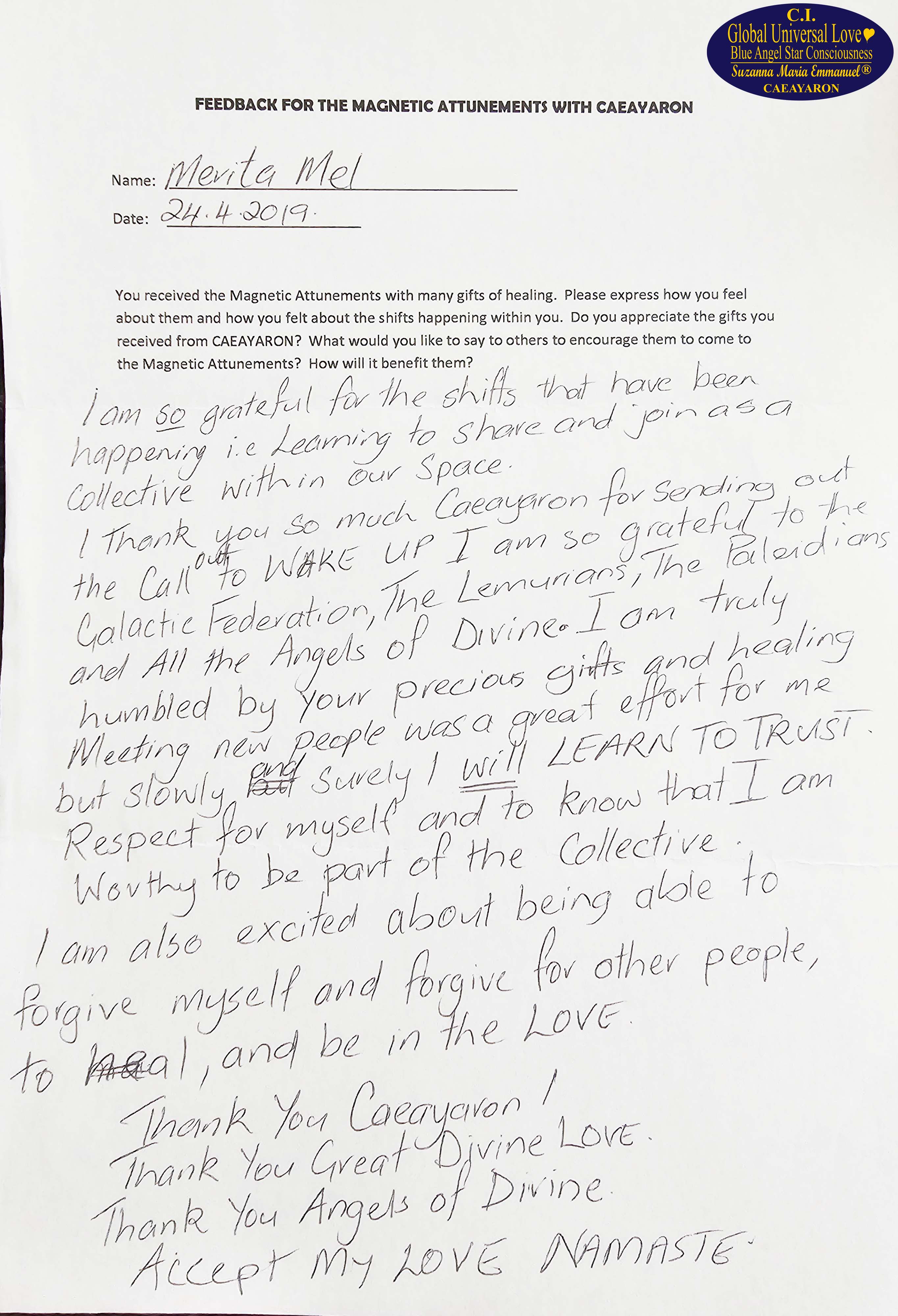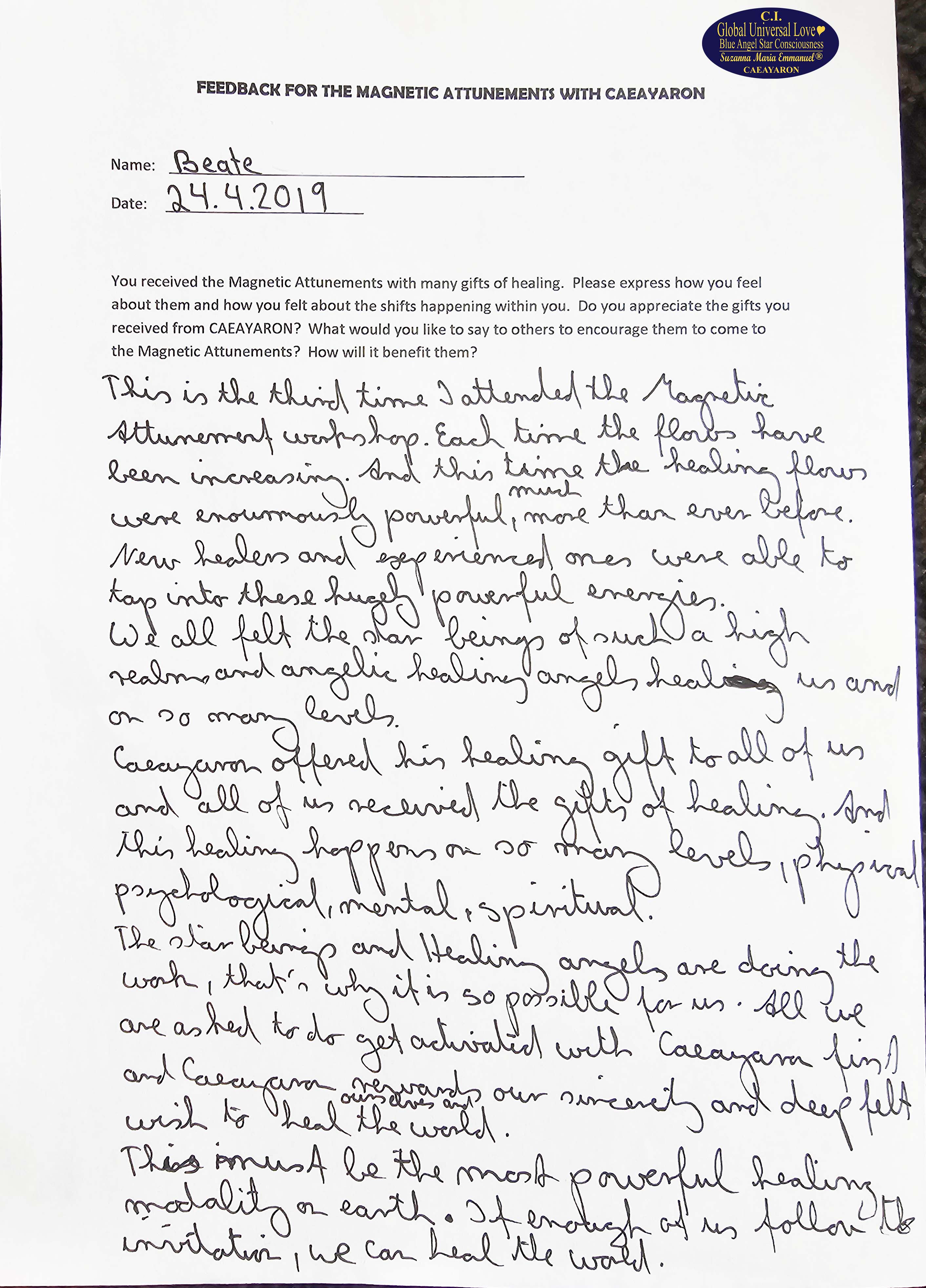 Suzanna Maria Emmanuel is The Original Sovereign Interdimensional Universal Love Neuron Star Creation DNA & RNA Intelligence Pineal Angel Channel Pathway. She began to work as The Original Sovereign Universal Love Angel Channel in front of groups of people, LIVE, since 2010. All her recordings were recorded.