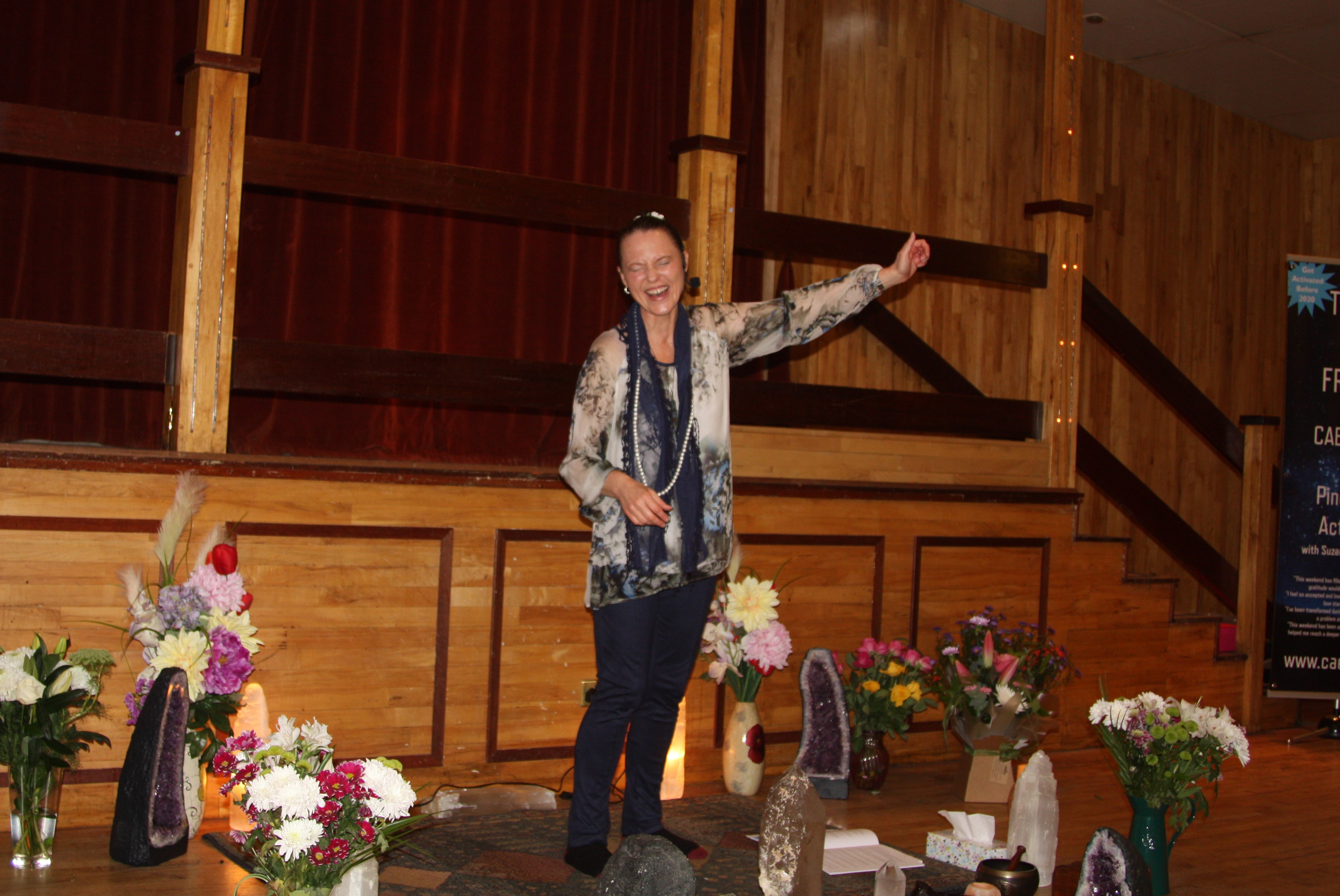 Suzanna can easily stop in between the transmissions to give everyone a break and to allow a fun interchange of encouragement to happen with all in the audience.