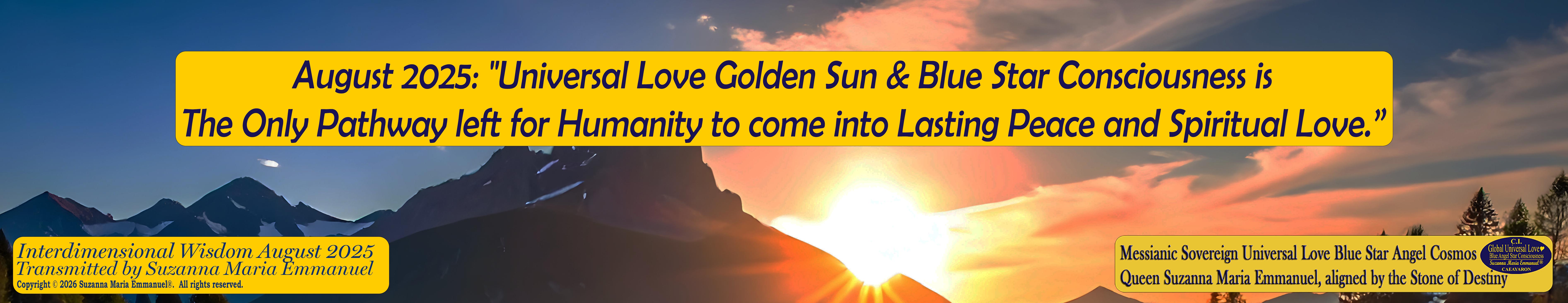 All Universal Love Star Consciousness Transmissions channelled by Suzanna Maria Emmanuel are Universal Love Star Consciousness Codes from Sovereign Lord Emmanuel, Caeayaron, Archangels, Star Pleiadian Masters and Ascended Masters In The Original Sovereign Universal Love Golden Sun Emmanuel Creation Realms. Copyright © 2026 Suzanna Maria Emmanuel®. All rights reserved.