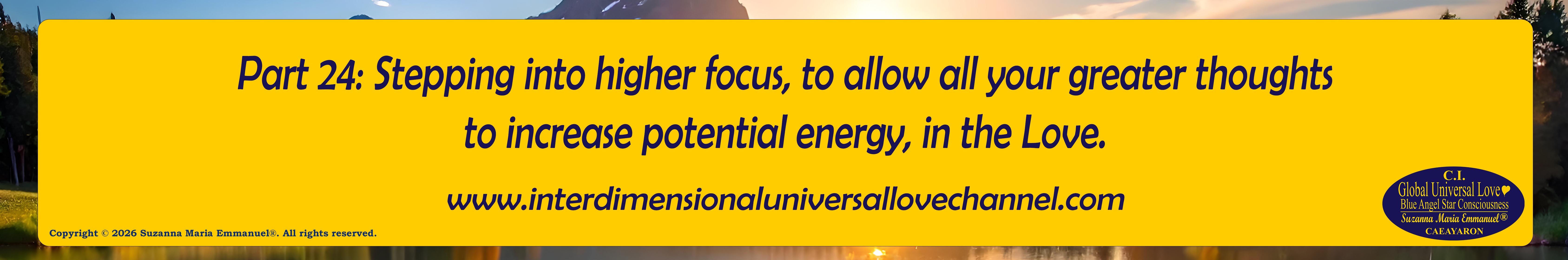 Copyright © 2026 Suzanna Maria Emmanuel®. All rights reserved. All Suzanna Maria Emmanuel's Original Star Intellect Transmissions of Universal Love Star Consciousness are trademarked and they all are copyright protected with a Professional Legal Disclaimer & Indemnity, Copyright Protection, Terms & Conditions and Trademark Clause. Terms & Conditions apply at all times.