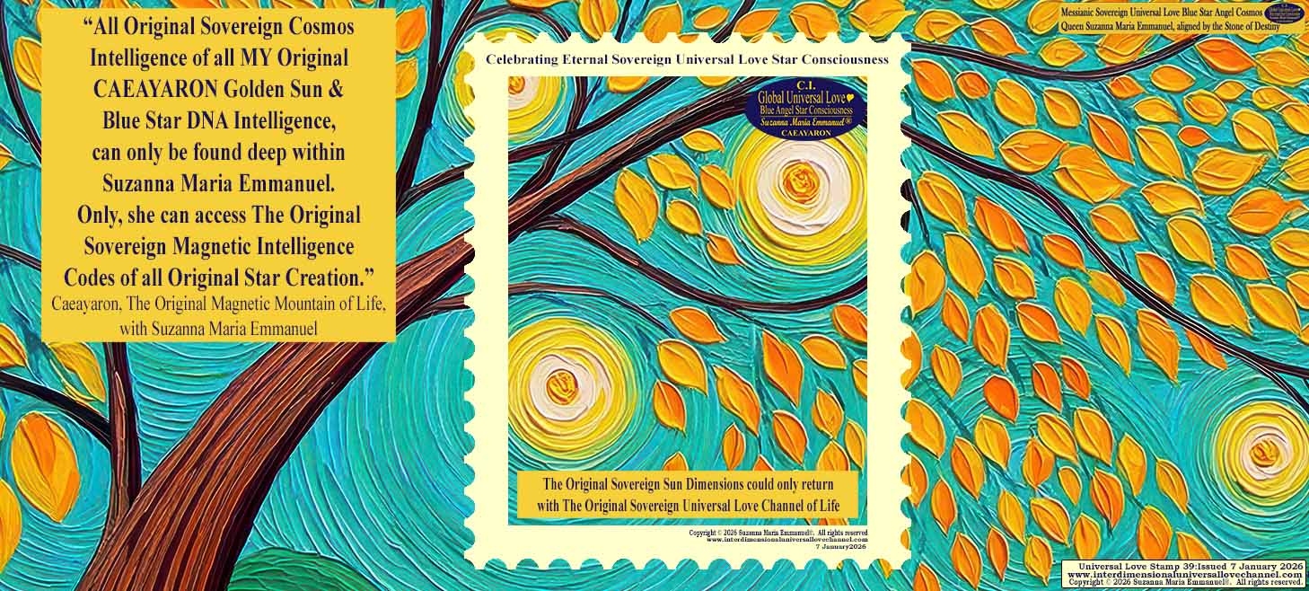 Suzanna Maria Emmanuel is The Original Sovereign Universal Love Golden Sun & Blue Star Angel Pineal DNA Transmission Channel for Sovereign Lord Emmanuel The Great & Caeayaron, The Original Sovereign Master of Magnetic Cosmos Intelligence in The Original Sovereign Universal Love Star Creation Dimensions.
