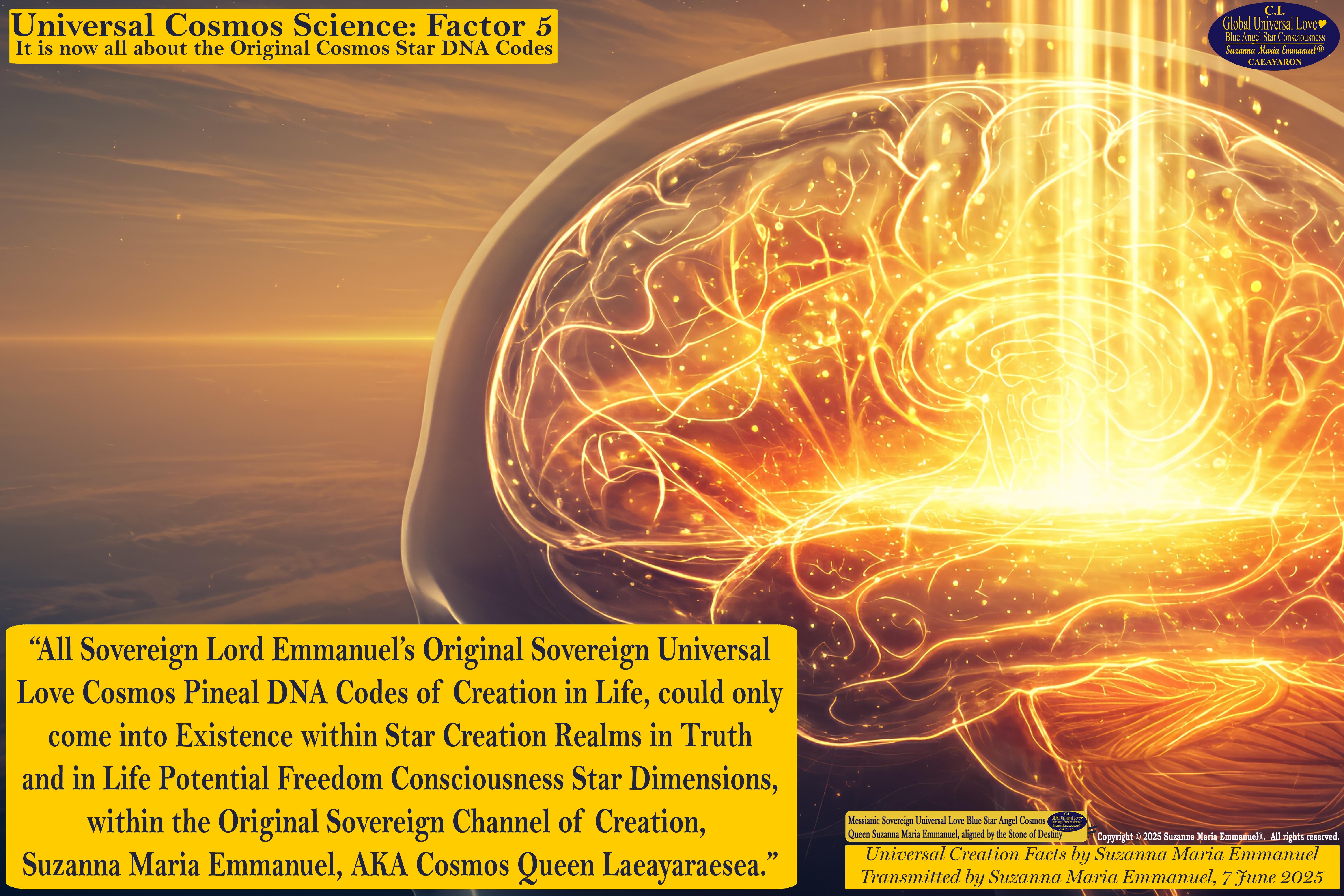 7 June 2025 - Universal Cosmos Science Factor 5: Suzanna Maria Emmanel, The Original Sovereign Channel, is the Original Coder of Life from The Eternal Star Realms.