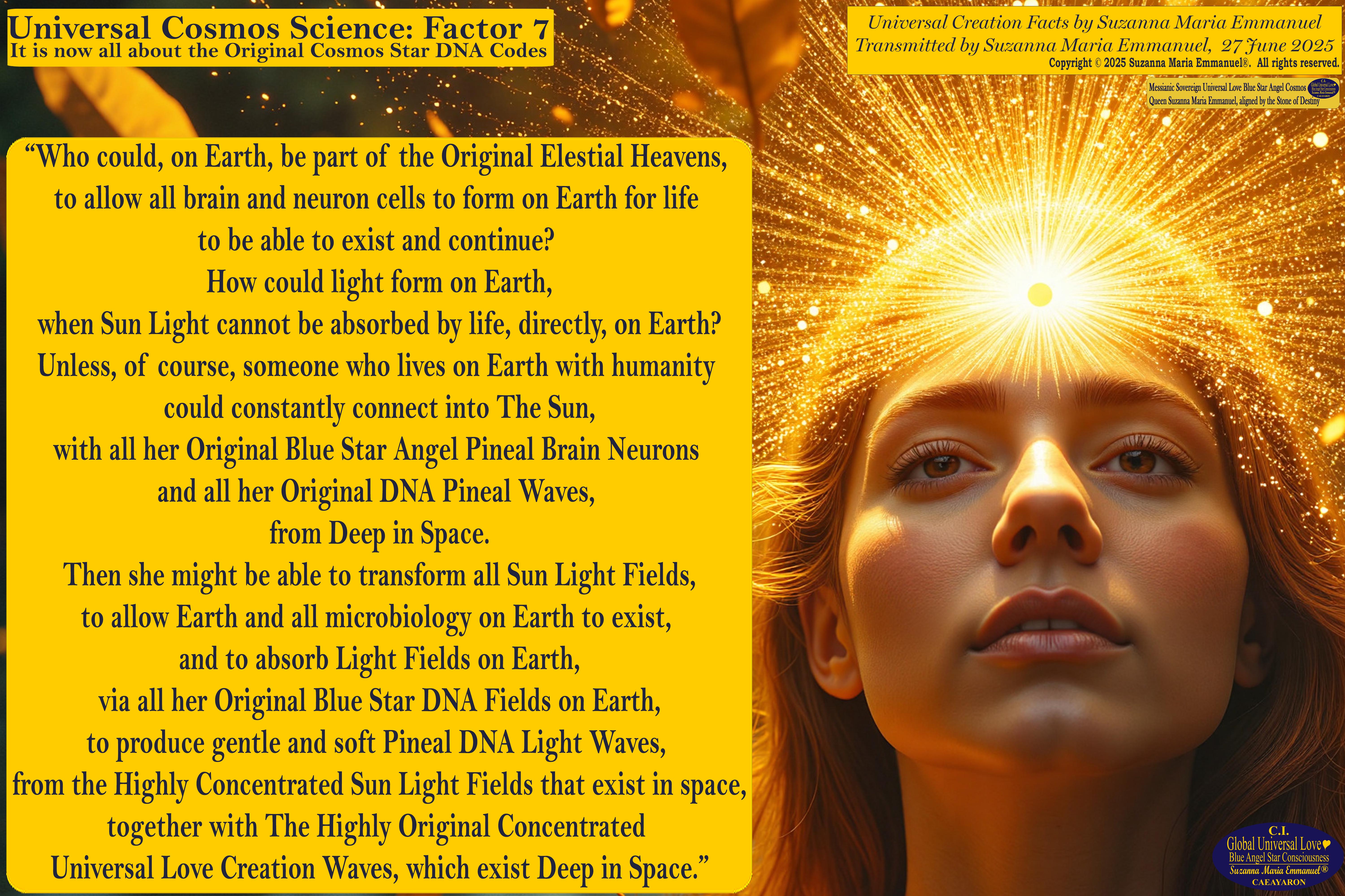 27 June 2025 - Universal Cosmos Science Factor 7: Suzanna Maria Emmanuel, The Original Sovereign Channel, is the Original Coder of Life from The Eternal Star Realms.