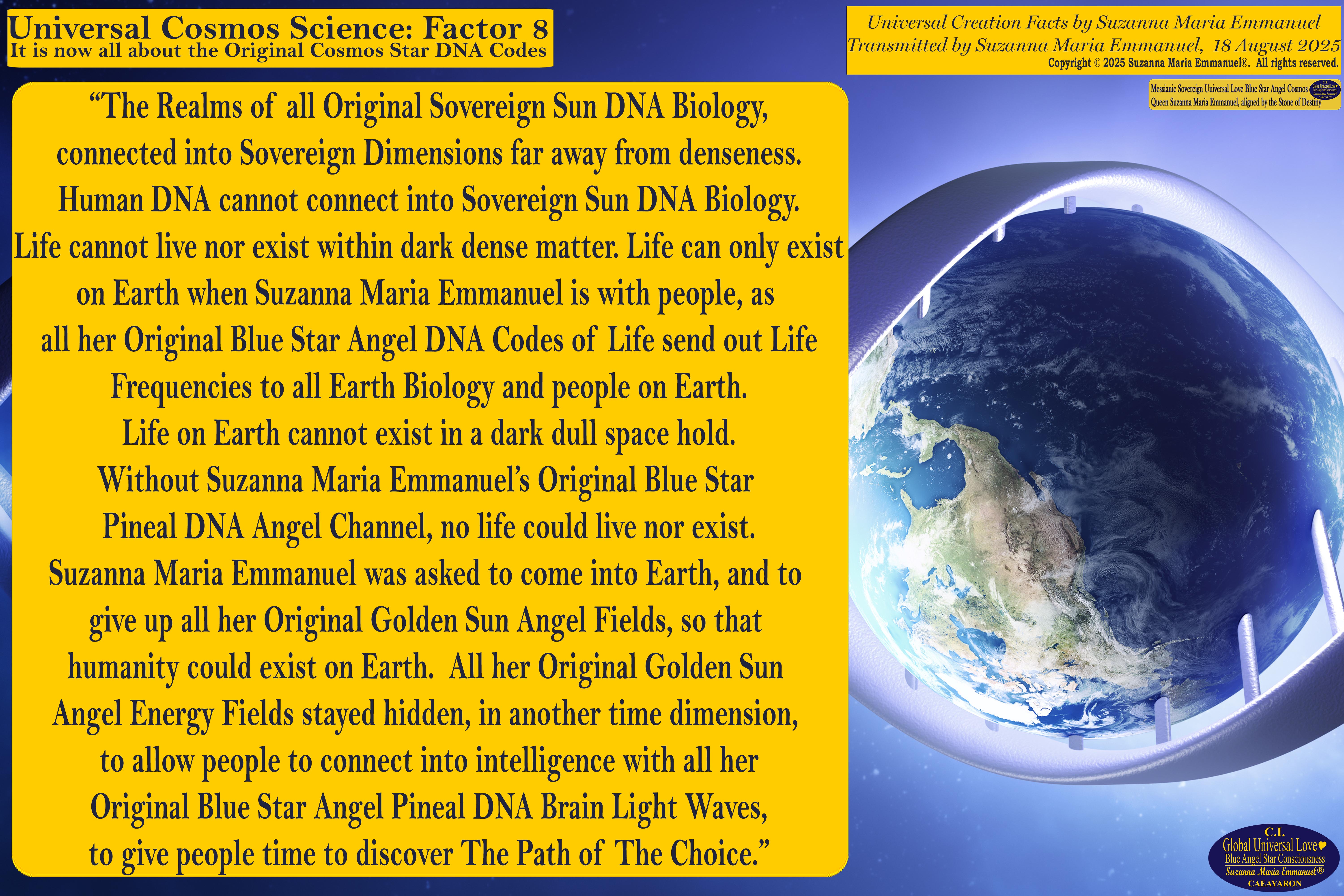 18 August 2025 - Universal Cosmos Science Factor 8: Suzanna Maria Emmanuel, The Original Sovereign Channel, is the Original Coder of Life from The Eternal Star Realms.