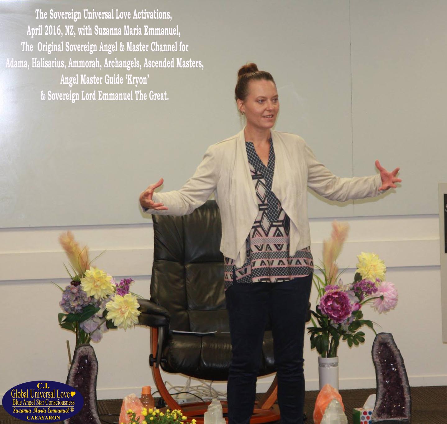 When people come to Caeayaron’s original Blue Star Sovereign Universal Love Activation Events, her personal commitment and dedication to the Divine Sovereign Universal Love is seen. Suzanna Maria Emmanuel stands on stage (for nearly 10 days with little time for tea breaks in between), in order for the Universal Love Teachers to graduate at the Sovereign Universal Love Activation Events. During the Sovereign Universal Love Star DNA Pineal Activation Events, Suzanna Maria Emmanuel is in full channel while she stands on stage with her eyes closed, seven to twelve hours per day, for most Activation Event days.
