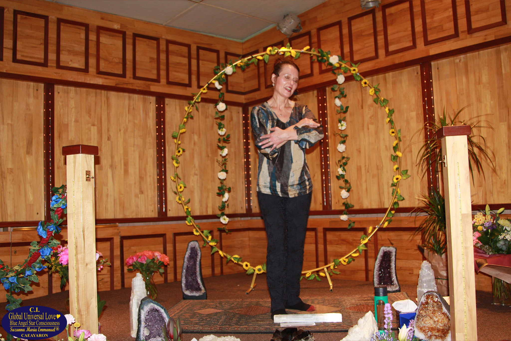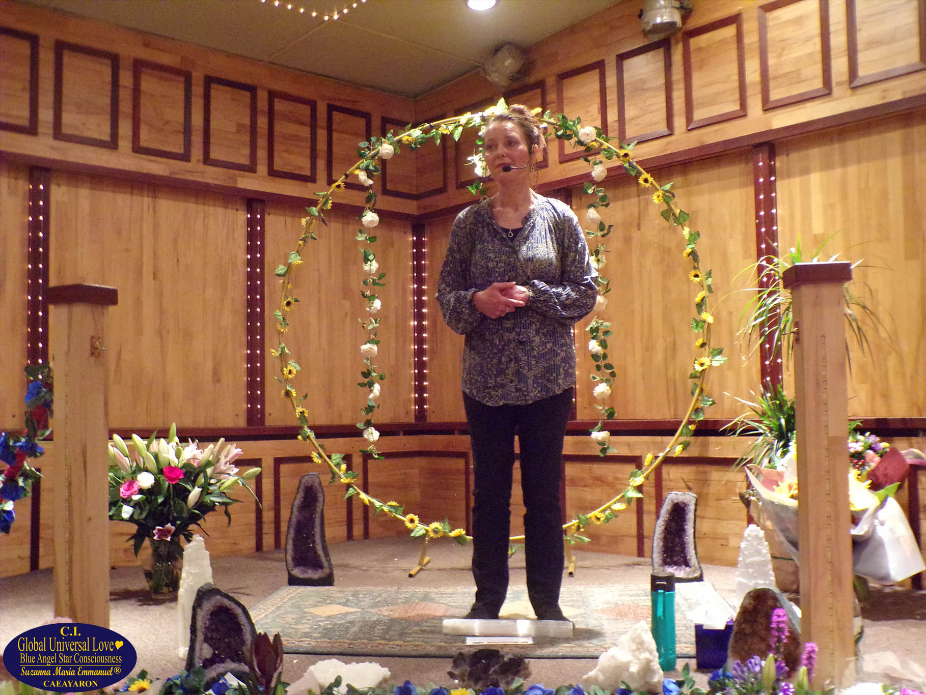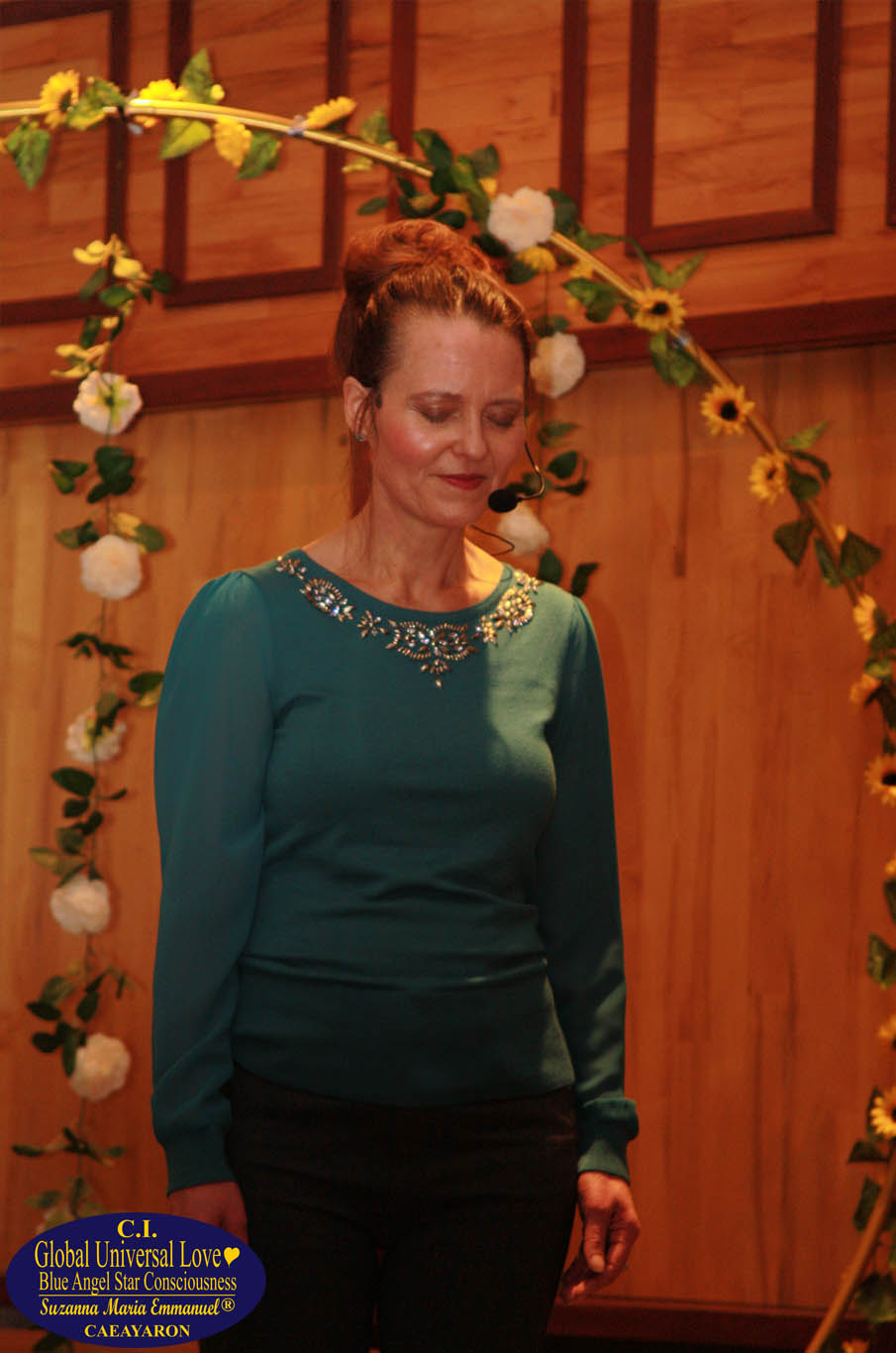 When Suzanna Maria Emmanuel works on stage (in front of a LIVE audience), she will stand for some hours to assist the knowledge fields of Caeayaron and Sovereign Lord Emmanuel to come into earth.