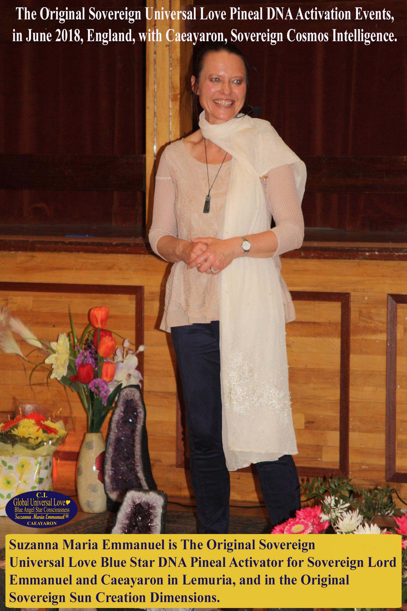 She is known world wide for being the original Sovereign Universal Love Consciousness Connector and DNA Pineal Activator. Suzanna Maria Emmanuel is the 'One' original Sovereign Pineal Activator from the original Sovereign Star Universal Love Consciousness Dimensions. She is a deep trance Angel Channel and can directly channel Masters from the Sovereign Dimensions. Suzanna Maria Emmanuel interlinks directly into all the original Sovereign Star Interdimensional Realms with her Pineal, Heart and Solar Golden Sun Fields.
